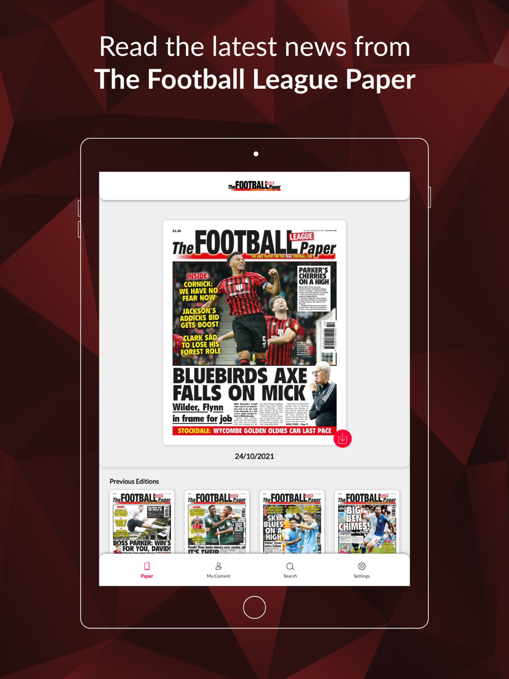 The Football League Paper provides in-depth coverage of all 72 Football League clubs (the tiers under the EPL) by reviewing their matches, news, features and stats. Published every Sunday in exceptional clarity.