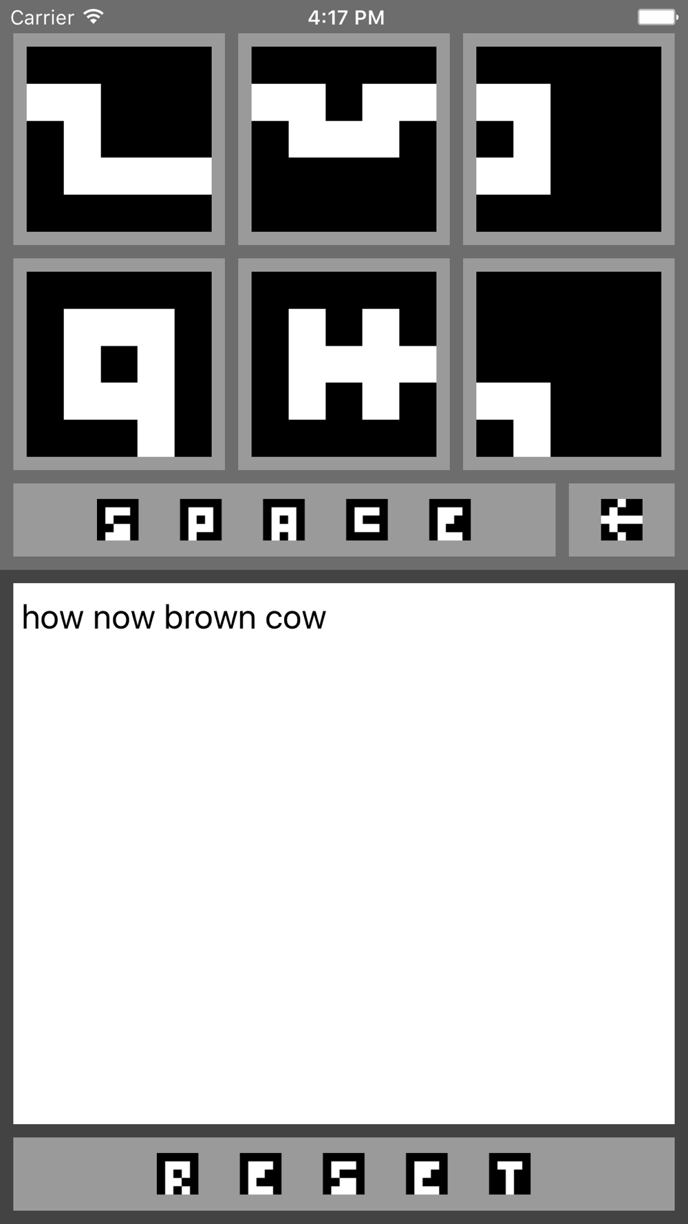 Translate those weird little markings in Polytron's mindblowing game FEZ into readable human text. Press and hold a character to select different variations.