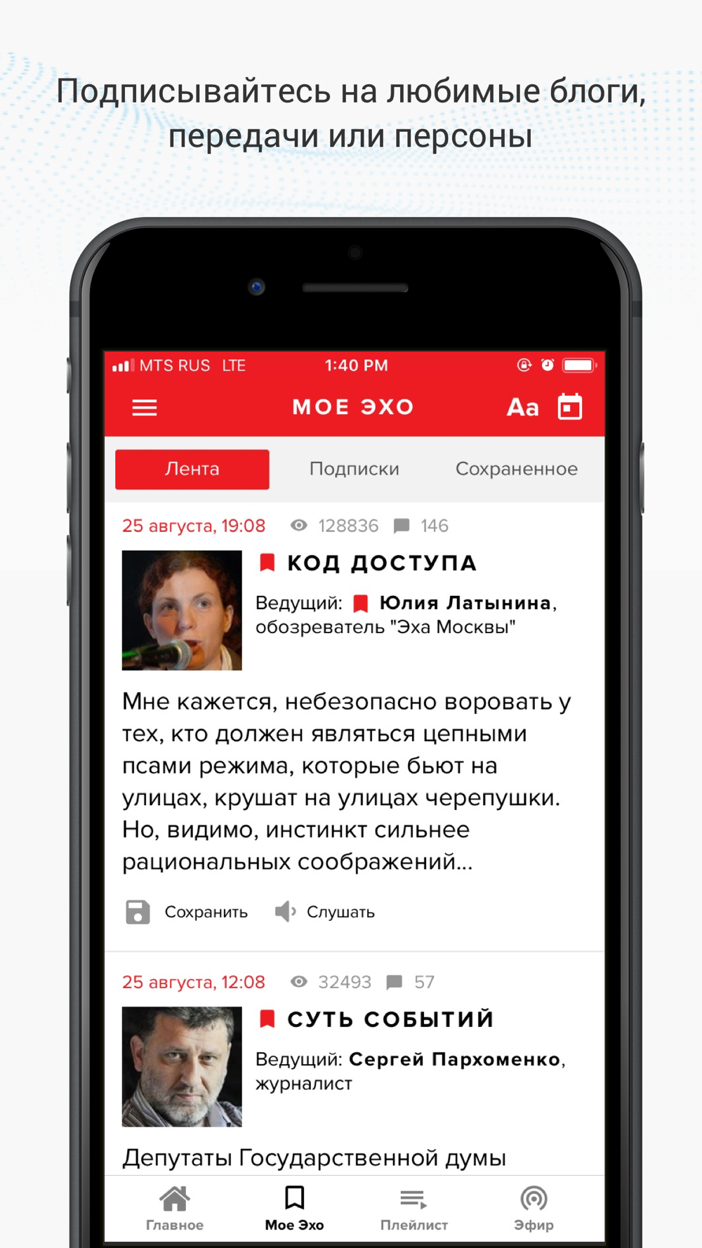 Подписывайтесь на любимые передачи и блоги. Составляйте собственные плейлисты,