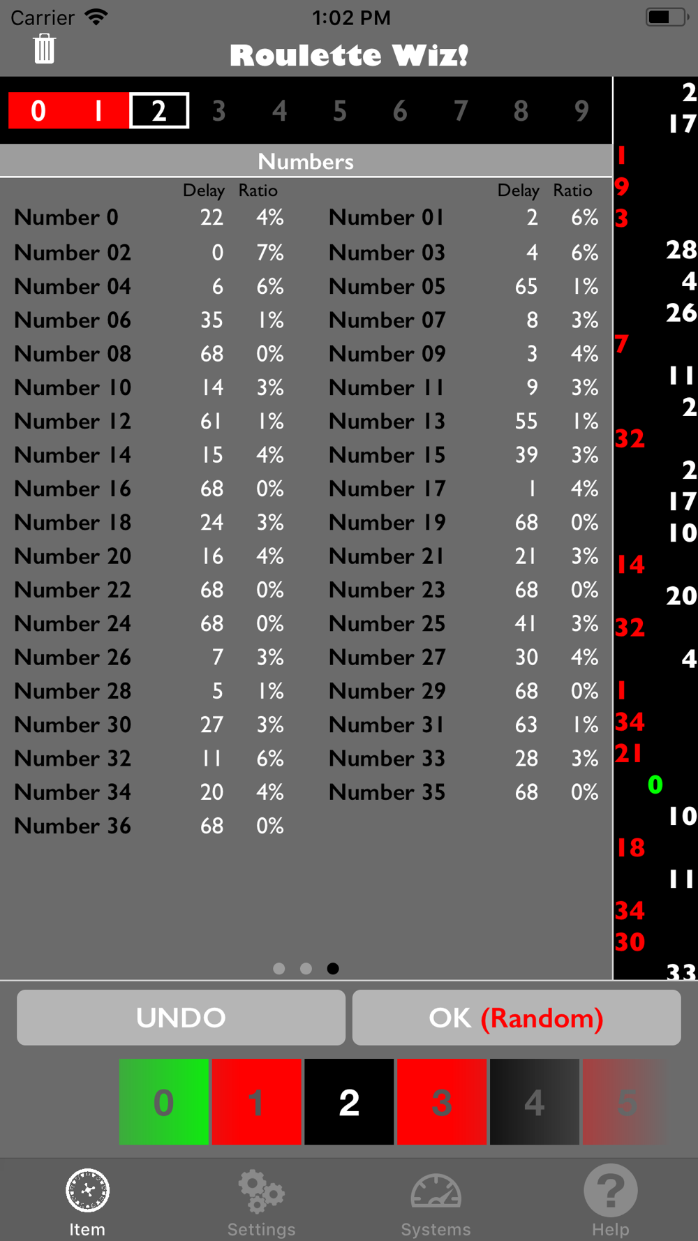 Roulette Wiz also shows some statistics: number of occurrences and their percentage, in order to control possible imbalances.