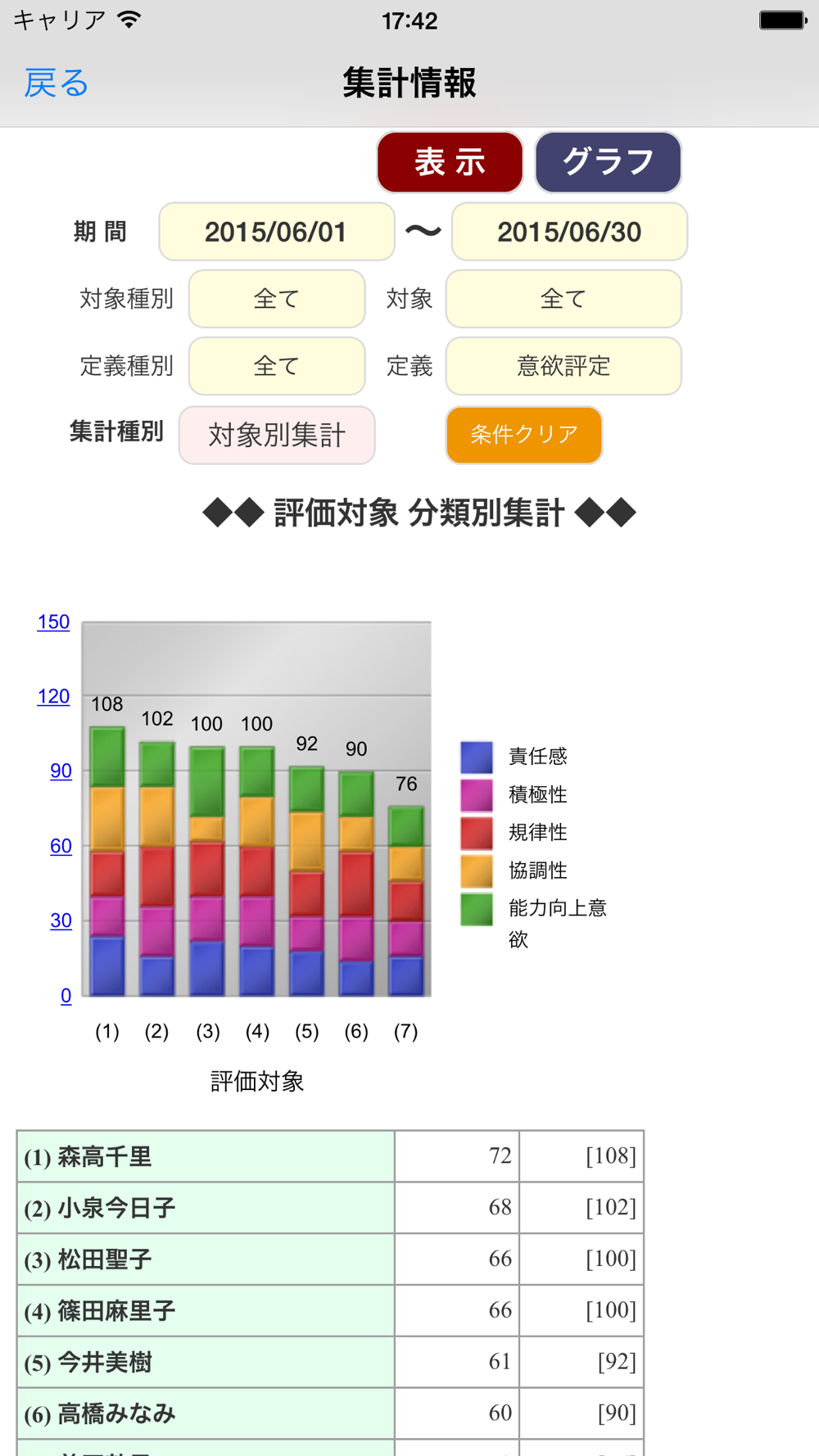 各一覧表・グラフ表示します。
