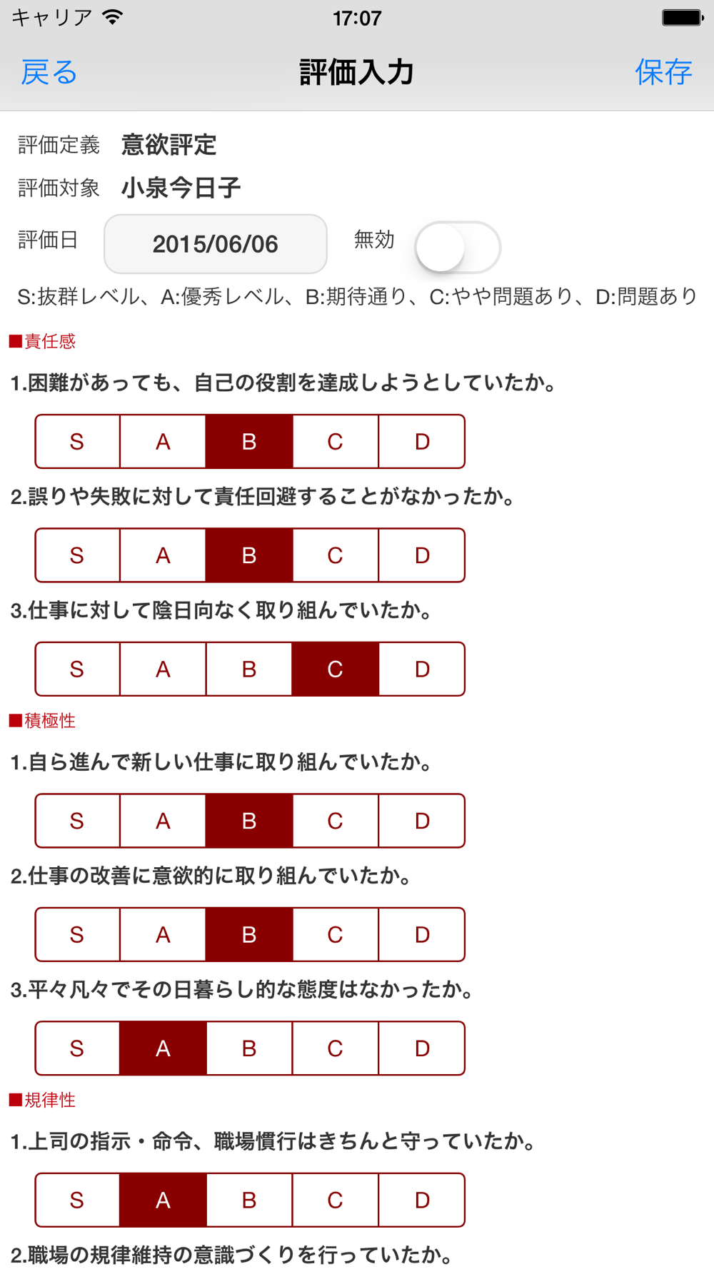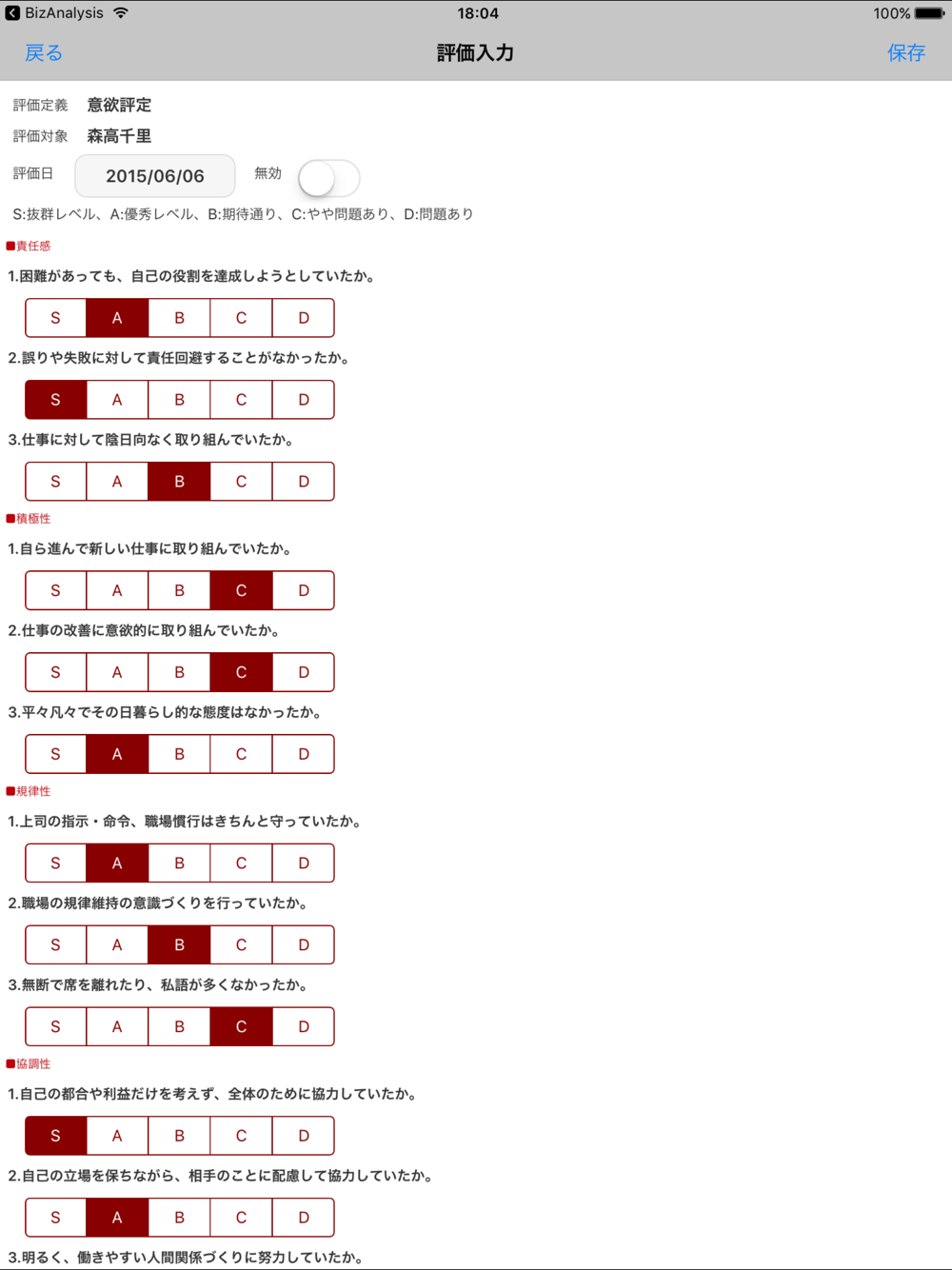 評価定義は任意に作成することができますので、御社の仕様に合わせて作成して下さい。