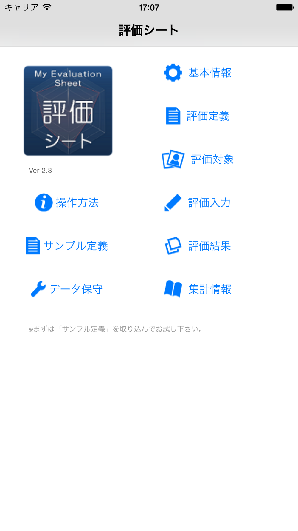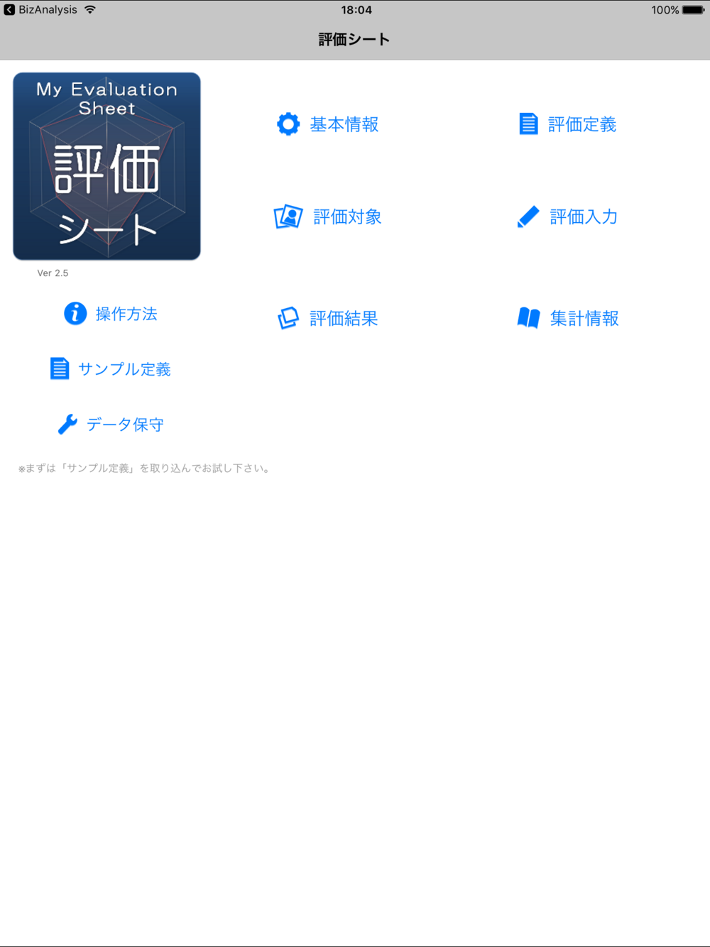 ◆実用的なサンプル評価定義をご用意しています。以下の定義を取り込むことができます。