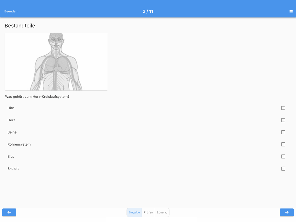 Diese App basiert auf dem WBT „Körperlehre“ der Schweizer Armee.