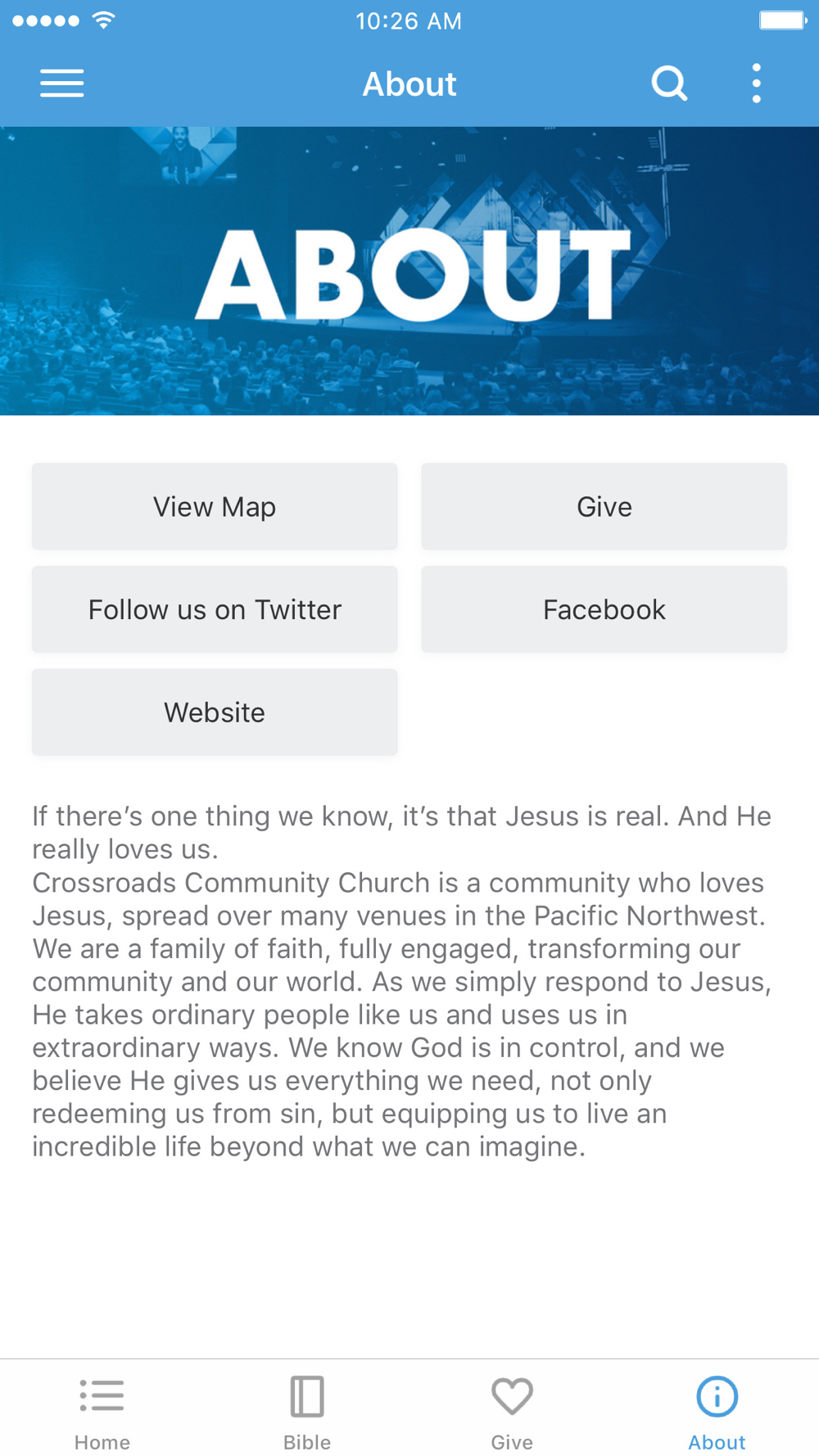 The Crossroads Community Church App was created with The Church App by Subsplash.