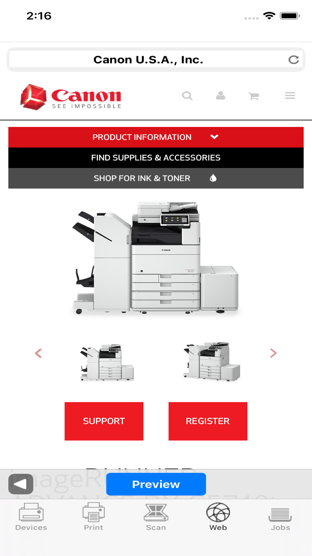 Canon USA's mobile print & scan app for imageRUNNER and imageRUNNER ADVANCE devices for iPhone and iPad.