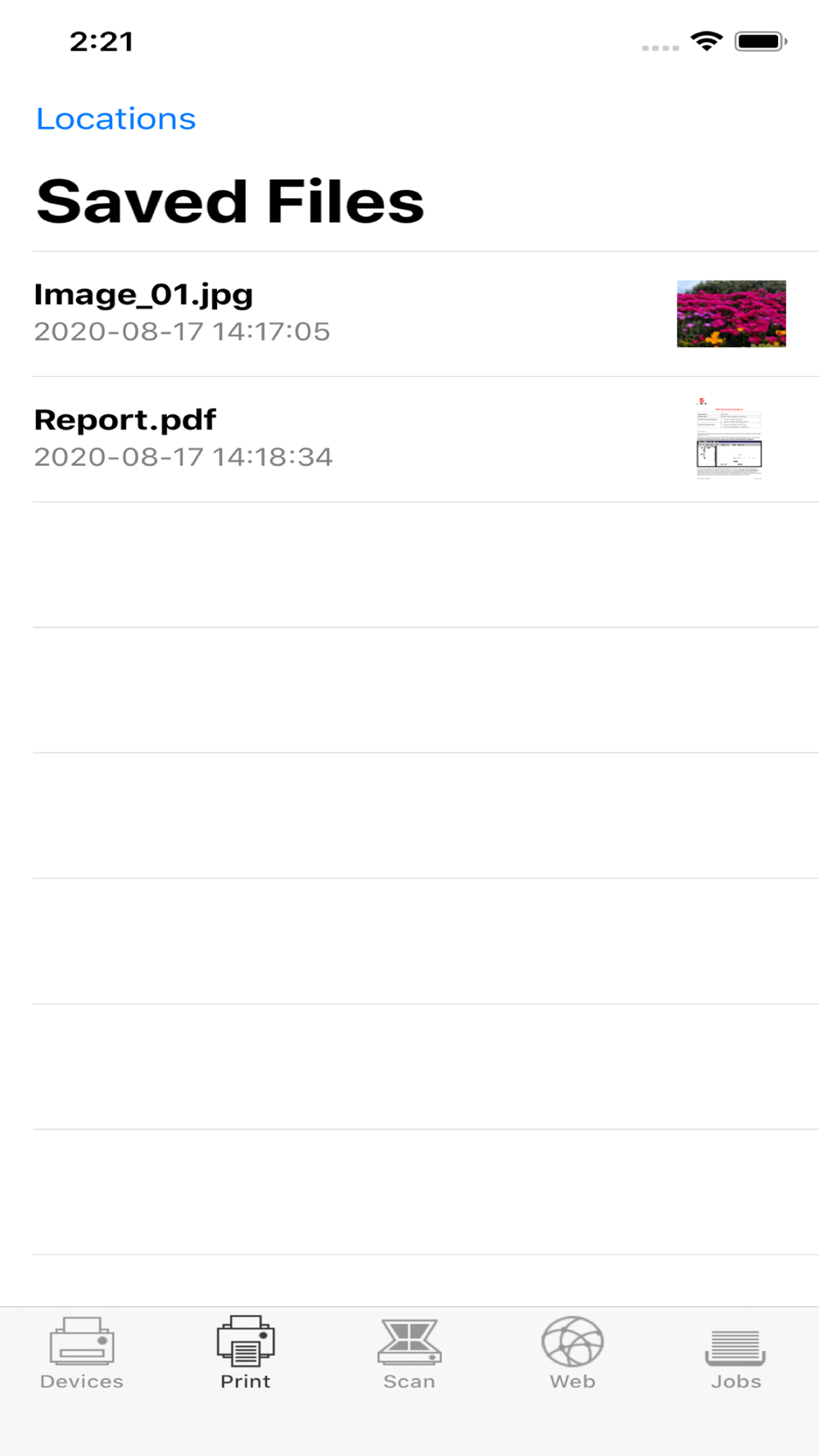 9) You are now ready to use the Canon Direct Print and Scan for Mobile application to print email attachments, saved files, and files from other applications that are PDF, TXT, TIFF, and JPG.