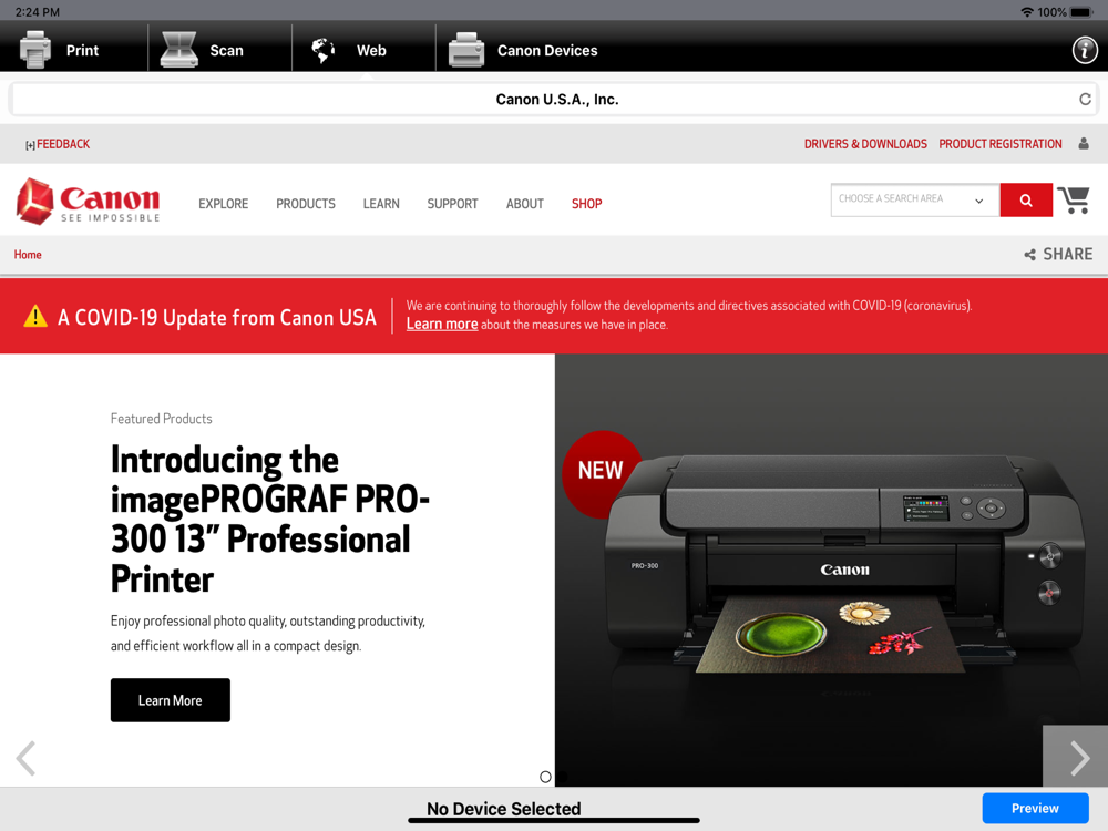 The Canon Direct Print and Scan for Mobile application helps meet the growing demands of on-the-go professionals, who need to keep pace with their fast-changing work environment, and provides them with a streamlined mobile print and scan solution.