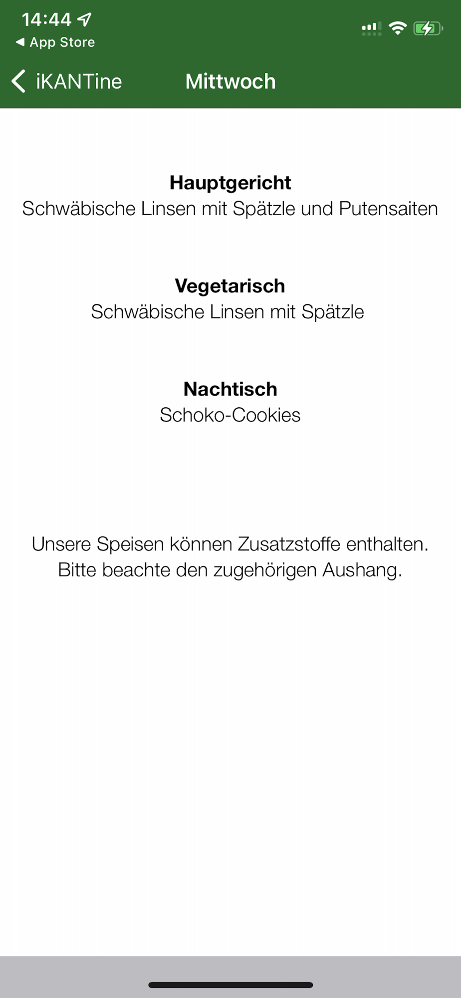 Der aktuelle Essensplan für die nächsten paar Tage wird automatisch heruntergeladen, sobald die App geöffnet wird und eine Internetverbindung besteht.