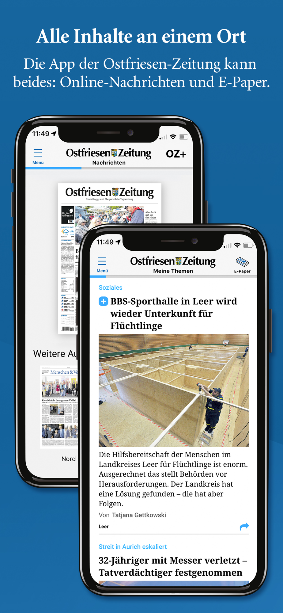 Doppelt gut: Die OZ-App vereint Online-Nachrichten und E-Paper in einer App. Sie greifen auf alle Artikel, Berichte, Bildergalerien und Videos der Ostfriesen-Zeitung zu. Beim Nutzen der App können Sie bequem zwischen der Ansicht des E-Papers und der Online-Nachrichten wechseln.
