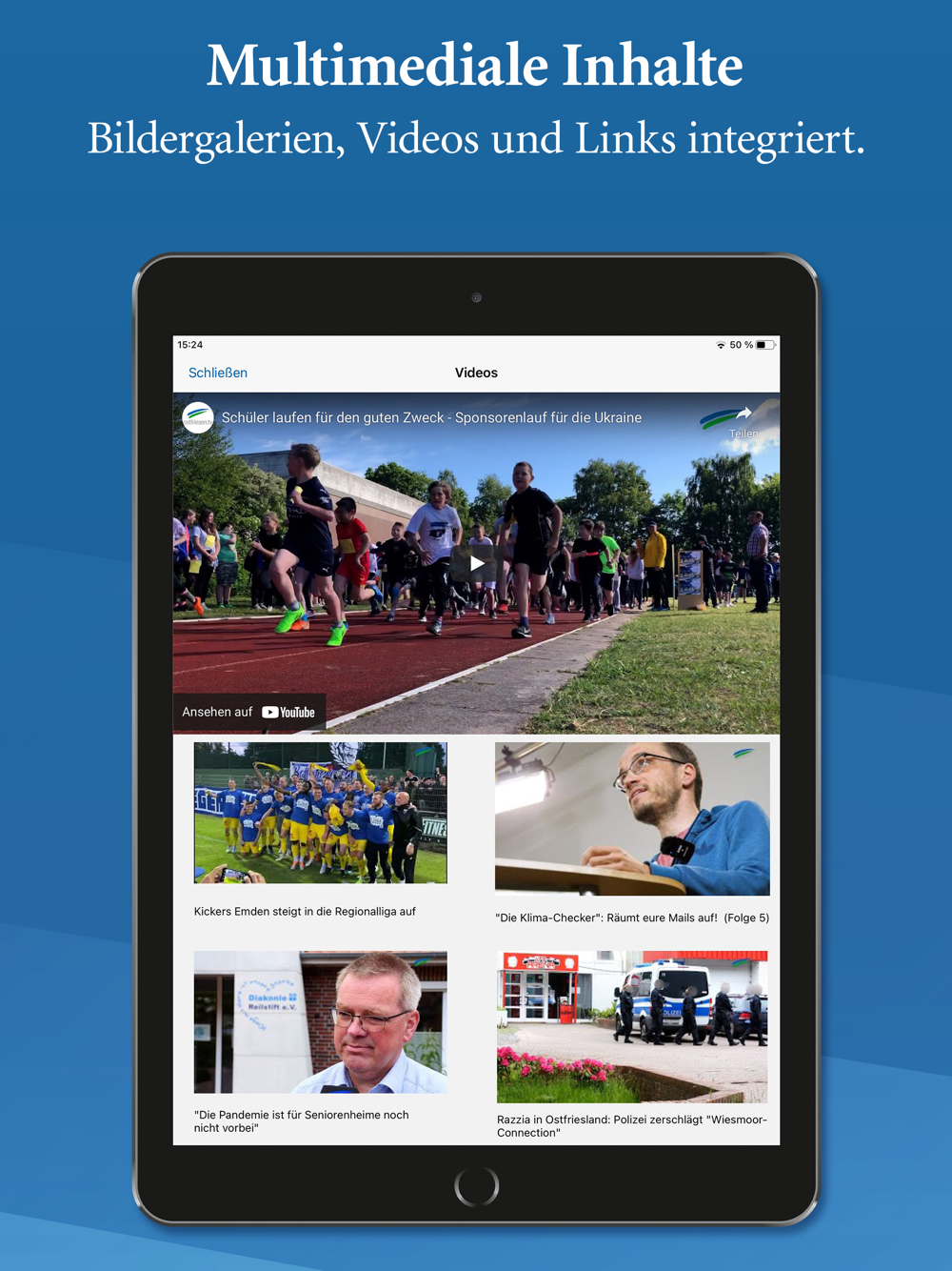 Doppelt gut: Die ON-App vereint Online-Nachrichten und E-Paper in einer App. Sie greifen auf alle Artikel, Berichte, Bildergalerien und Videos der Ostfriesischen Nachrichten zu. Beim Nutzen der App können Sie bequem zwischen der Ansicht des E-Papers und ON+ wechseln.
