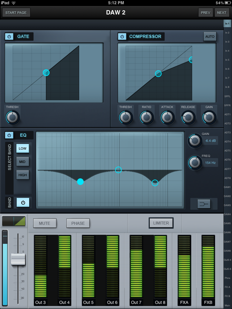 •Overview displays levels, mutes, panning, EQ curves, and Fat Channel processing for multiple channels at once