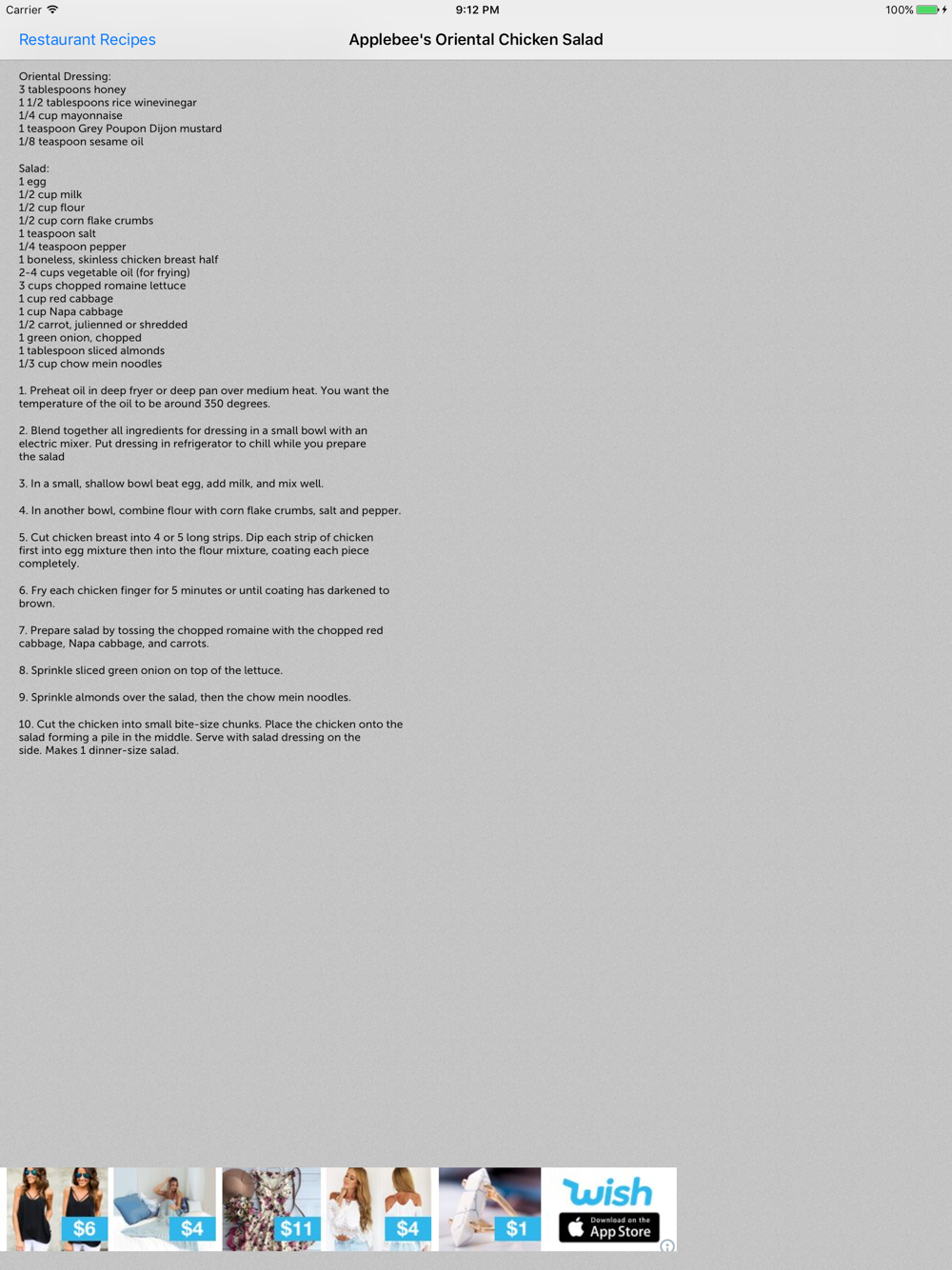 View hundreds of recipes from your favorite restaurants on your iPhone, iPad or iPod.