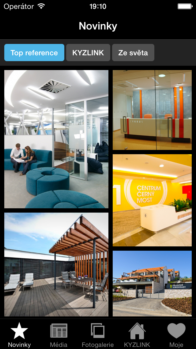 V této aplikaci naleznete NOVINKY KYZLINK a ZE SVĚTA, které stojí za to sledovat. Obsahují odkazy na zajímavosti v oblasti architektury a designu, českých i mezinárodních realizací, výstav i soutěží.