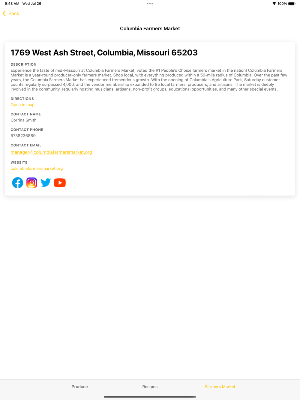 In addition to information and recipes for produce found in Missouri, a directory of farmer's markets where fresh produce can be purchased is provided. Choose fruits and vegetables in season and you get all the benefits — food that tastes good, is good for you and is reasonably priced. Whether you get your fruits and vegetables at your farmer’s market, a roadside farm stand, through Community Supported Agriculture (CSA), or from your own garden or local grocery store, enjoy the goodness of fruits and vegetables. Eat a variety every day.