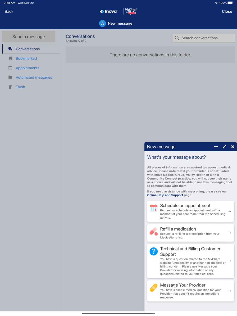 As an Inova patient, you can use our Inova app to access MyChart, a free service offered by participating Inova medical facilities and doctors' offices that gives you personalized and secure on-line access to portions of your medical records.