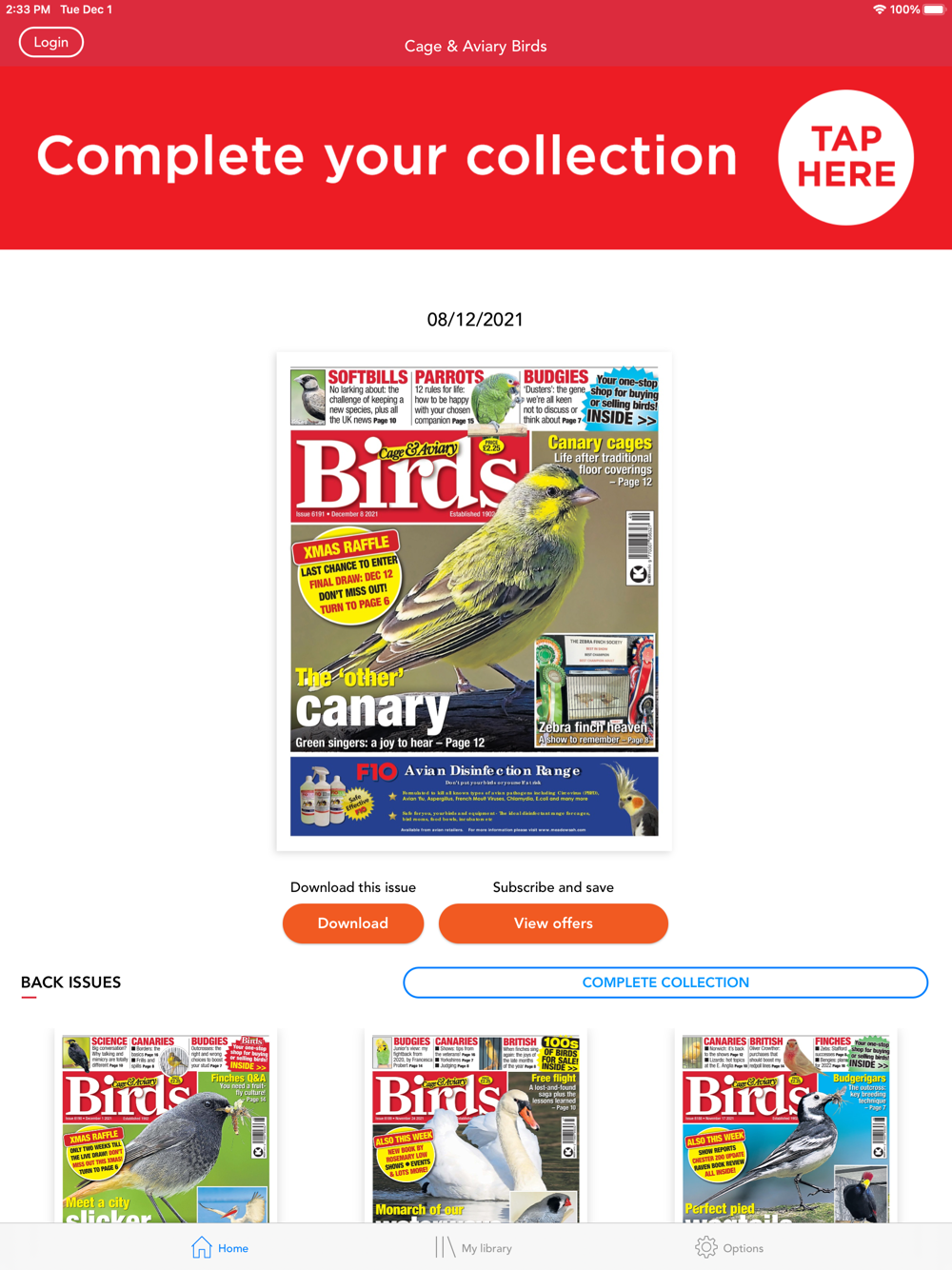 This is a free app download. Within the app users can purchase the current issue and back issues.