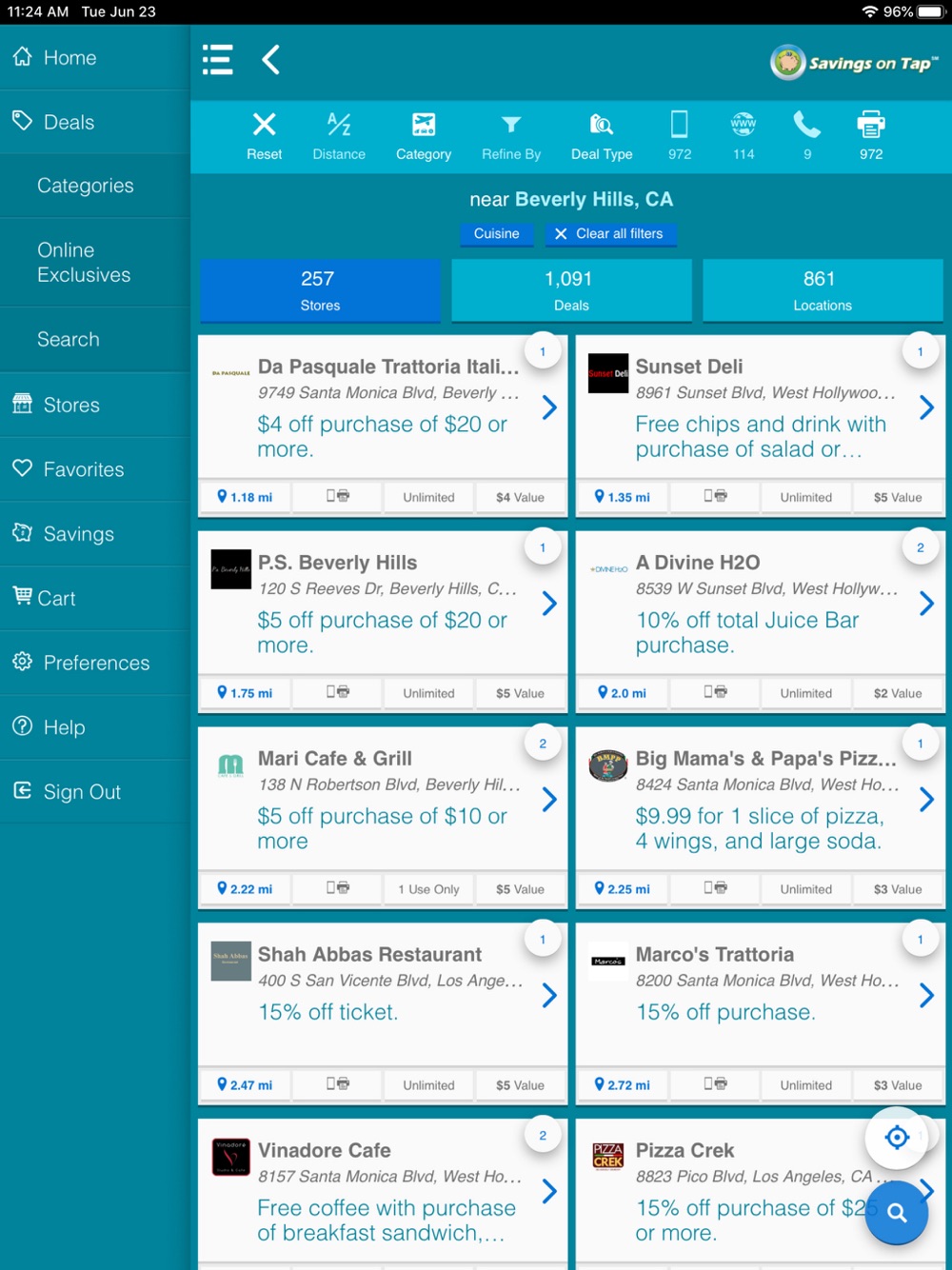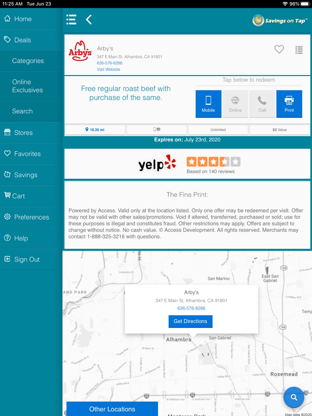 Only members of Everywhere Cash Savings or Online Local Savings can access and use these deals. To begin saving, simply download the app, login and start finding deals near you.