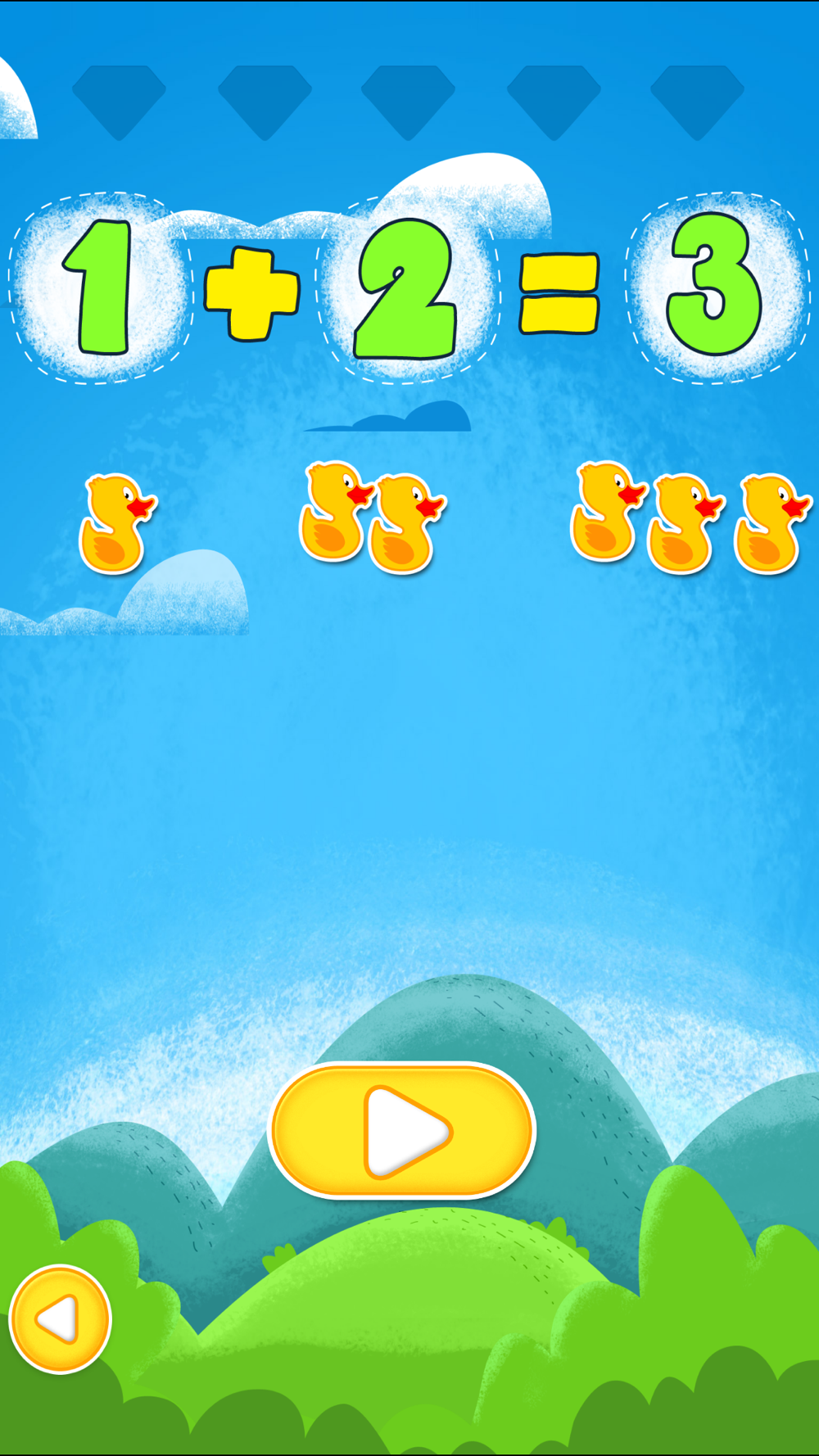 The app is split in nine levels. In every level there are six equations, which the child has to solve.