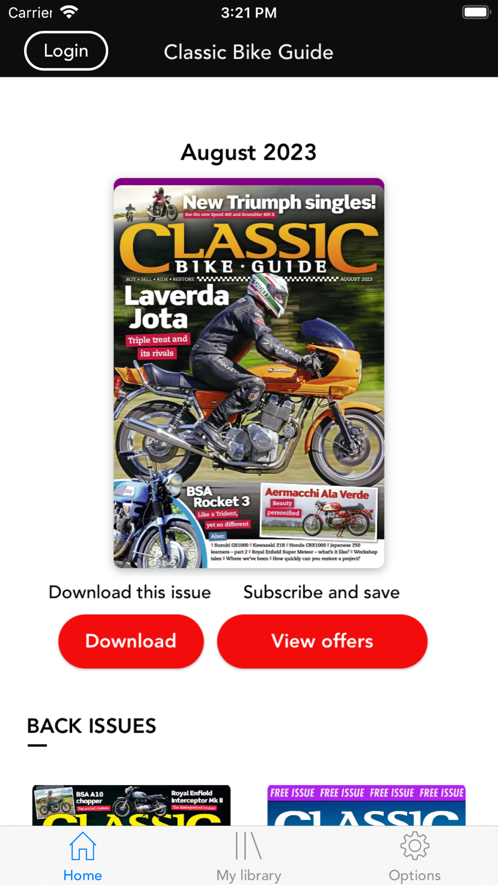 Subscriptions are also available within the application. A subscription will start from the latest regular issue at the time of purchase.