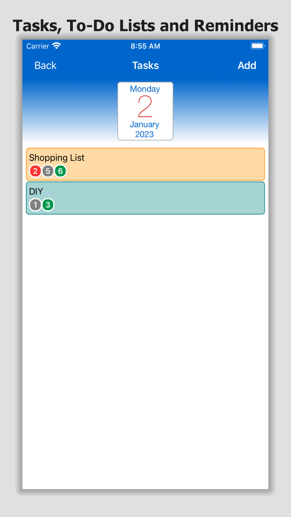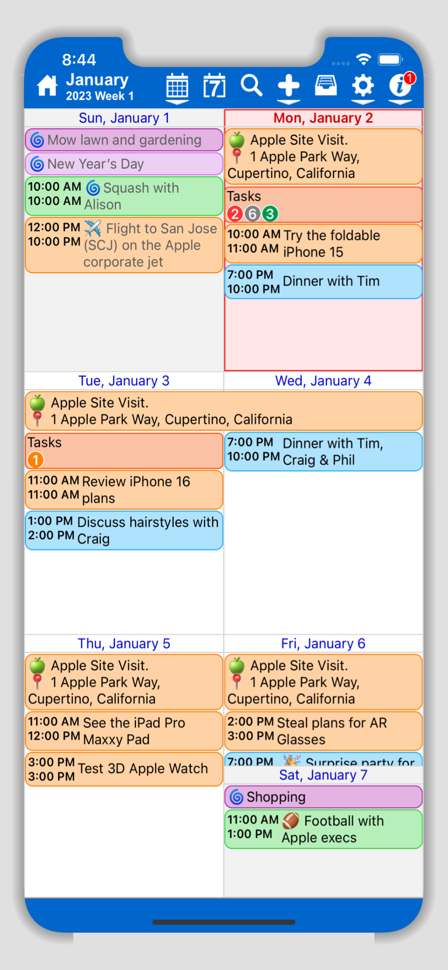 • Sync with iCloud, Google, Yahoo, Exchange and other cloud based calendars