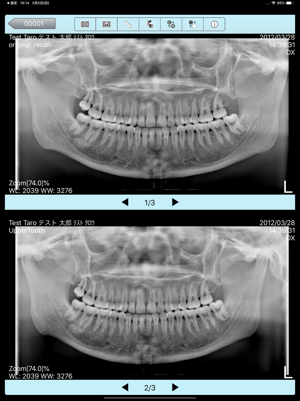 DentPadは歯科用DICOM画像ビューワーです。歯科用デジタルレントゲン「PanoACT」シリーズ製品で撮影した各種レントゲン画像や同製品で取り込んだ口腔内写真等をiPadで表示します。