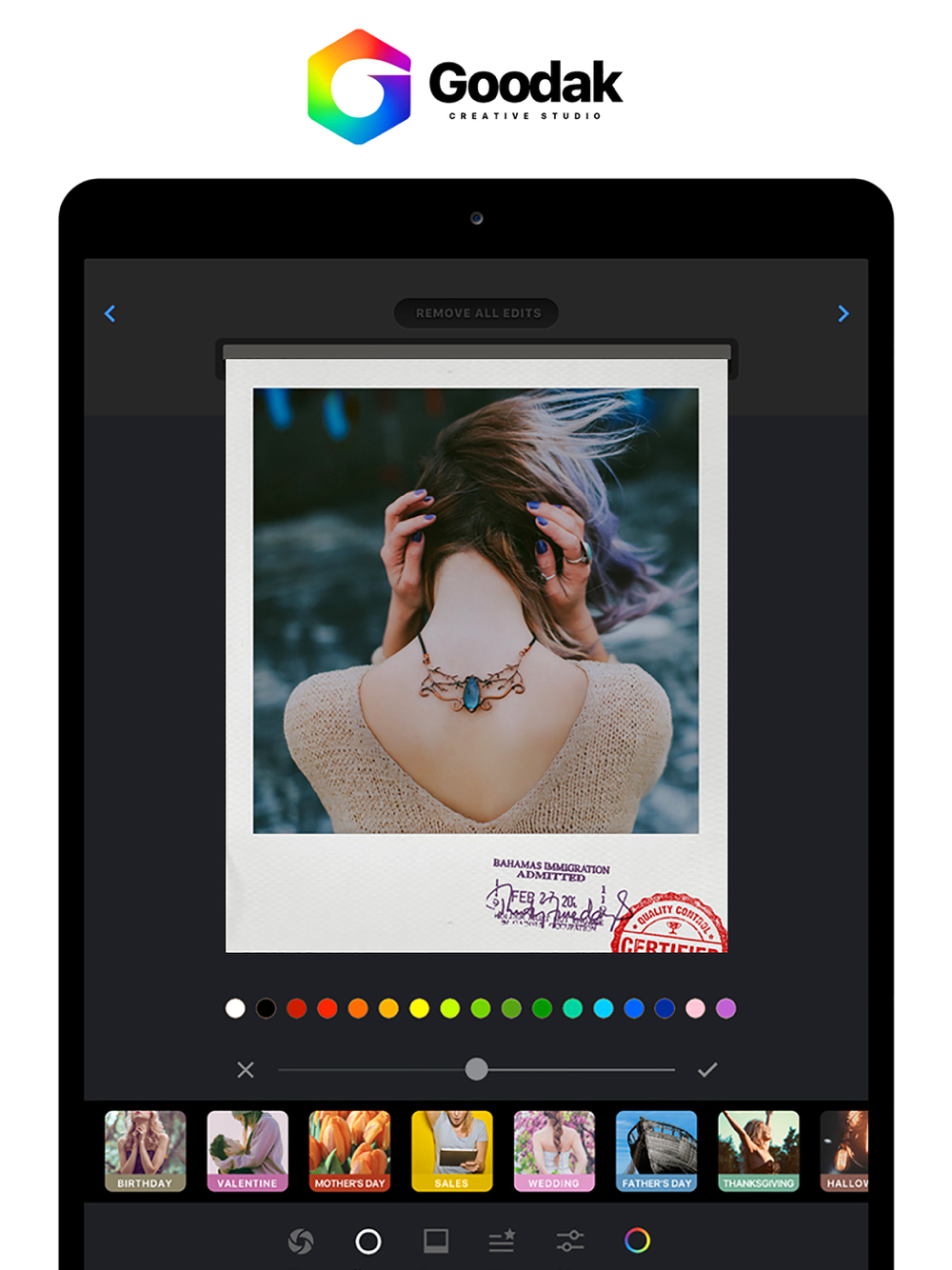Goodak Edit for quick and straight forward editing, a unique way to add artwork, beautiful message, photos of your daily life and traveling can be depicted as the most memorable moment, Be a part of this awesome design expression through photography.