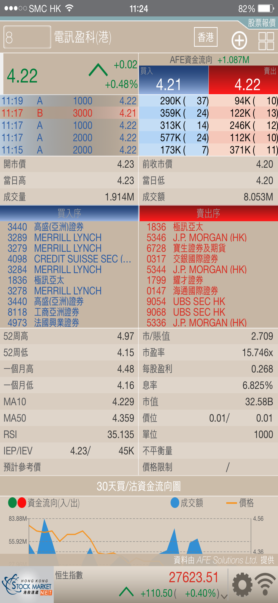 HKSMN is a new generation stock information system jointly developed by PCCW and AFE Solutions Limited. AFE Solutions Limited is the leading information provider for real-time prices, news and analytics in Hong Kong financial market. Established since 1983, AFE has been serving major brokerage firms and banks in HK with its high quality stocks market information terminals and trading systems. Among AFE self-developed exclusive AFE Real Time Bought/Sold Fund Flow that has become an indispensable and crucial reference for professional investors and traders.