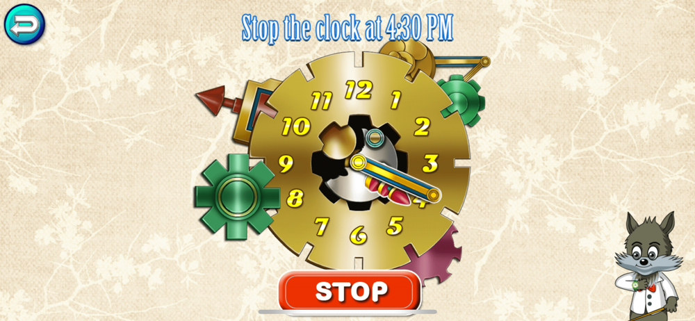 2.Set the time on an analog clock and touch the red button to finish it ;