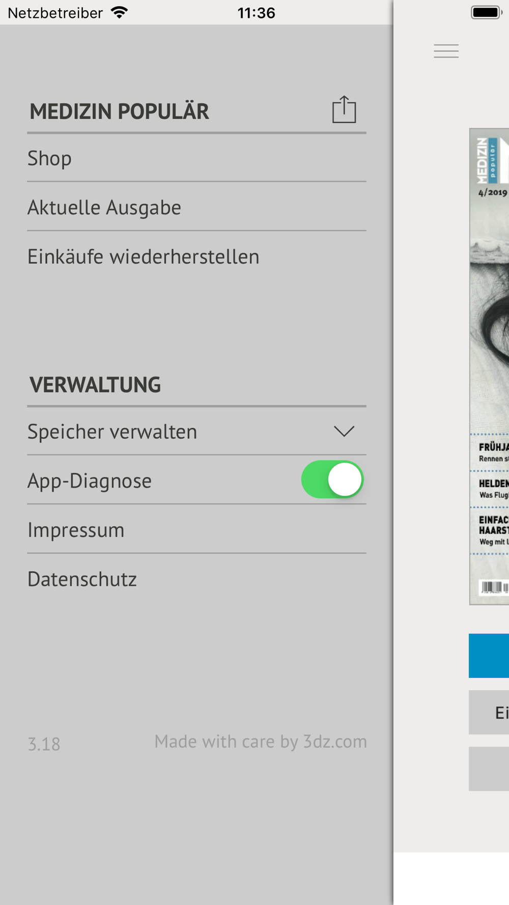 Der Erfolg gibt uns recht: Rund 300.000 Leserinnen und Leser schlagen bei MEDIZIN populär nach, wenn sie Informationen über das Wichtigste in ihrem Leben suchen – ihre Gesundheit. Mit der App-Version erweitern wir unser Angebot: So können Sie zum Beispiel zu jedem Thema, das Sie besonders interessiert, mit nur einem Fingertipp weiteres Wissen aus unserem umfangreichen Online-Archiv abrufen.