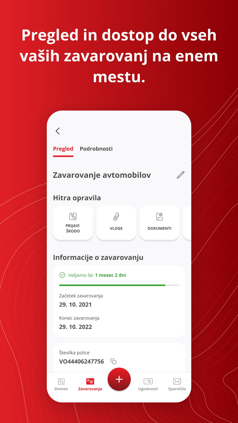 • dodajanje, urejanje in pregled vaših zavarovalnih polic kjerkoli in kadarkoli,