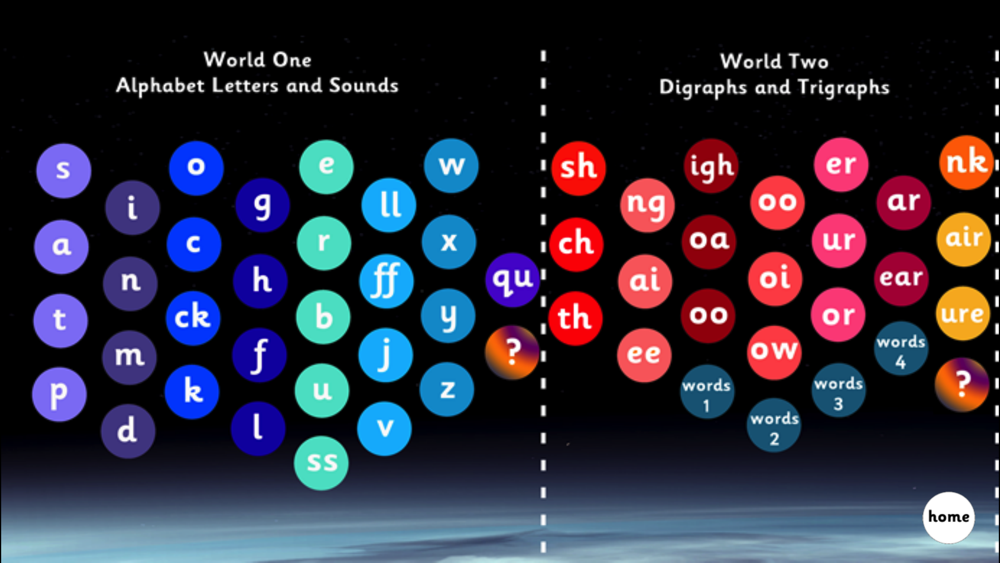 Game structure: The words in each game are in sync with a child's ability, so the 's' level will not have the word 'sausage' because the 'soft g' words are in a later level. The 's' level instead features words that are easy to blend and read: 'sat', 'sip'.