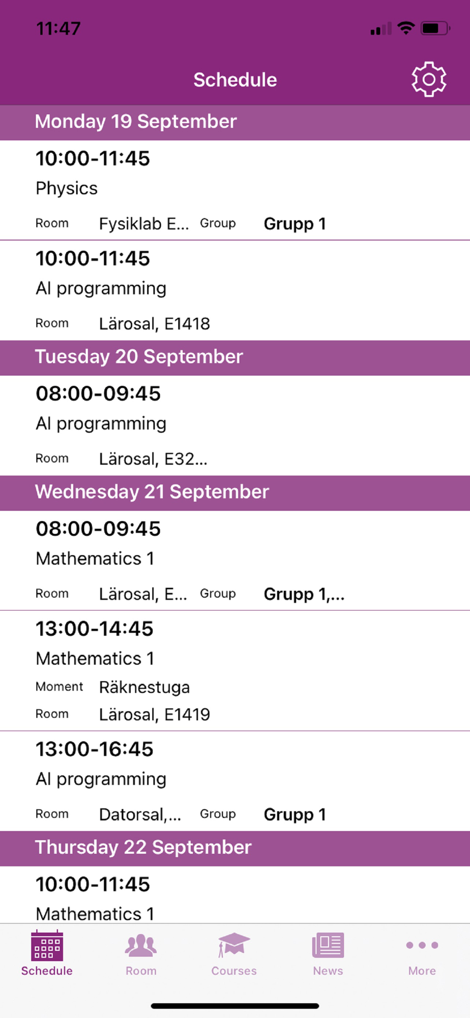 Welcome to the Jönköping University’s student app. For those of you who study at the university, the app provides you with the following features: