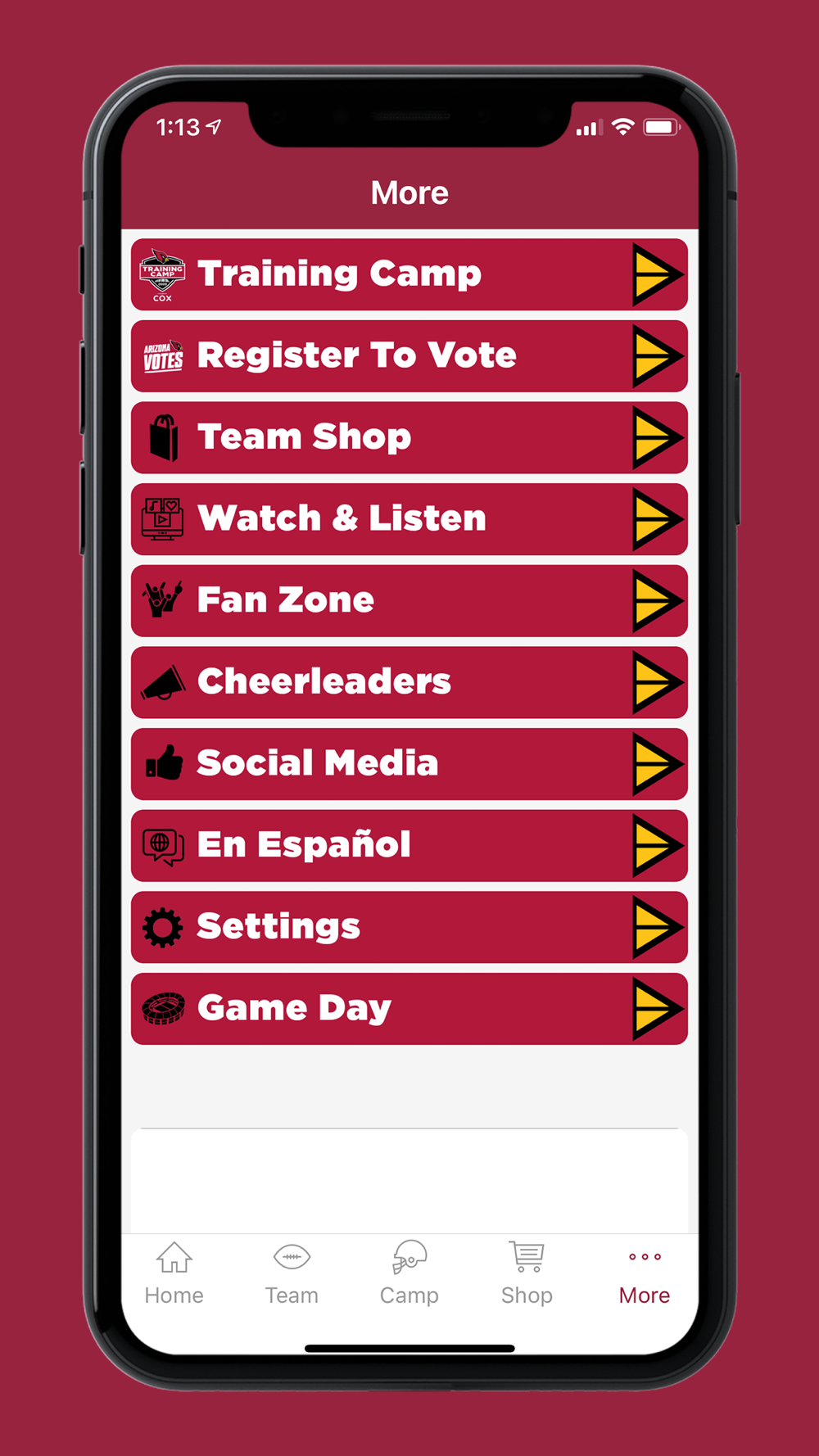 Welcome to the official mobile app of the Arizona Cardinals. Make your iPhone, iTouch and iPad a unique part of your Cardinals experience at any time, from any place.