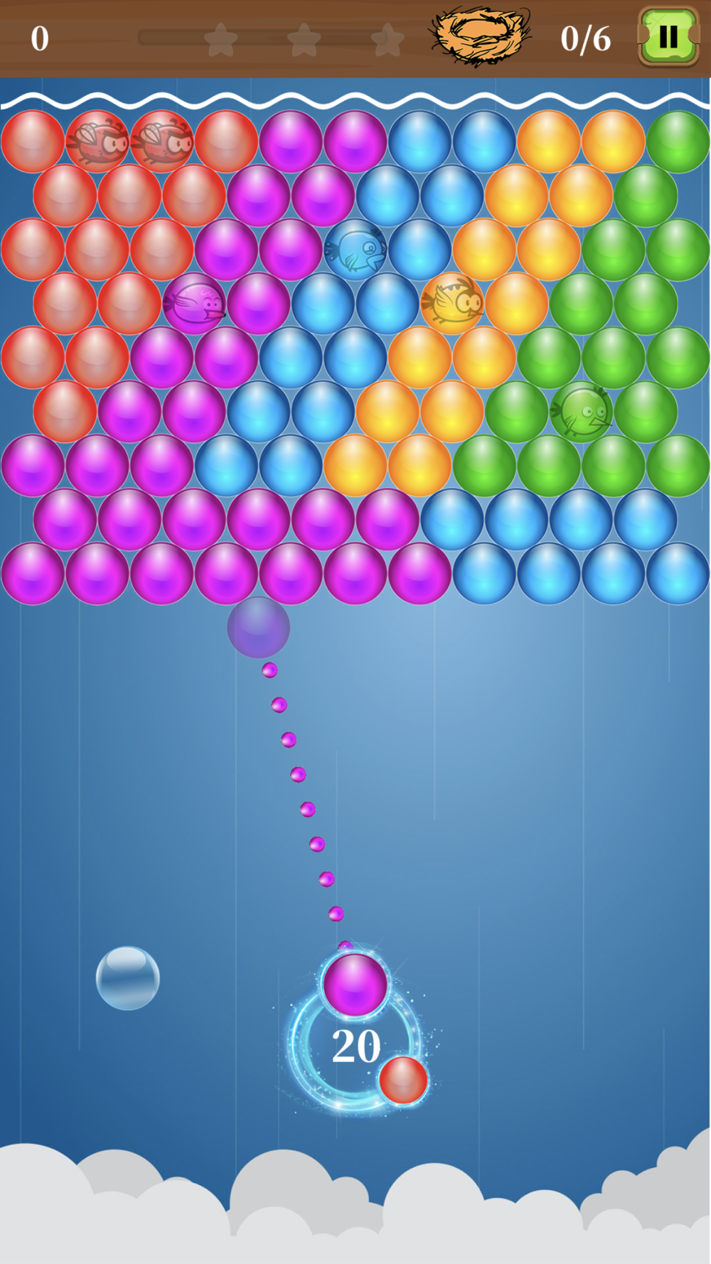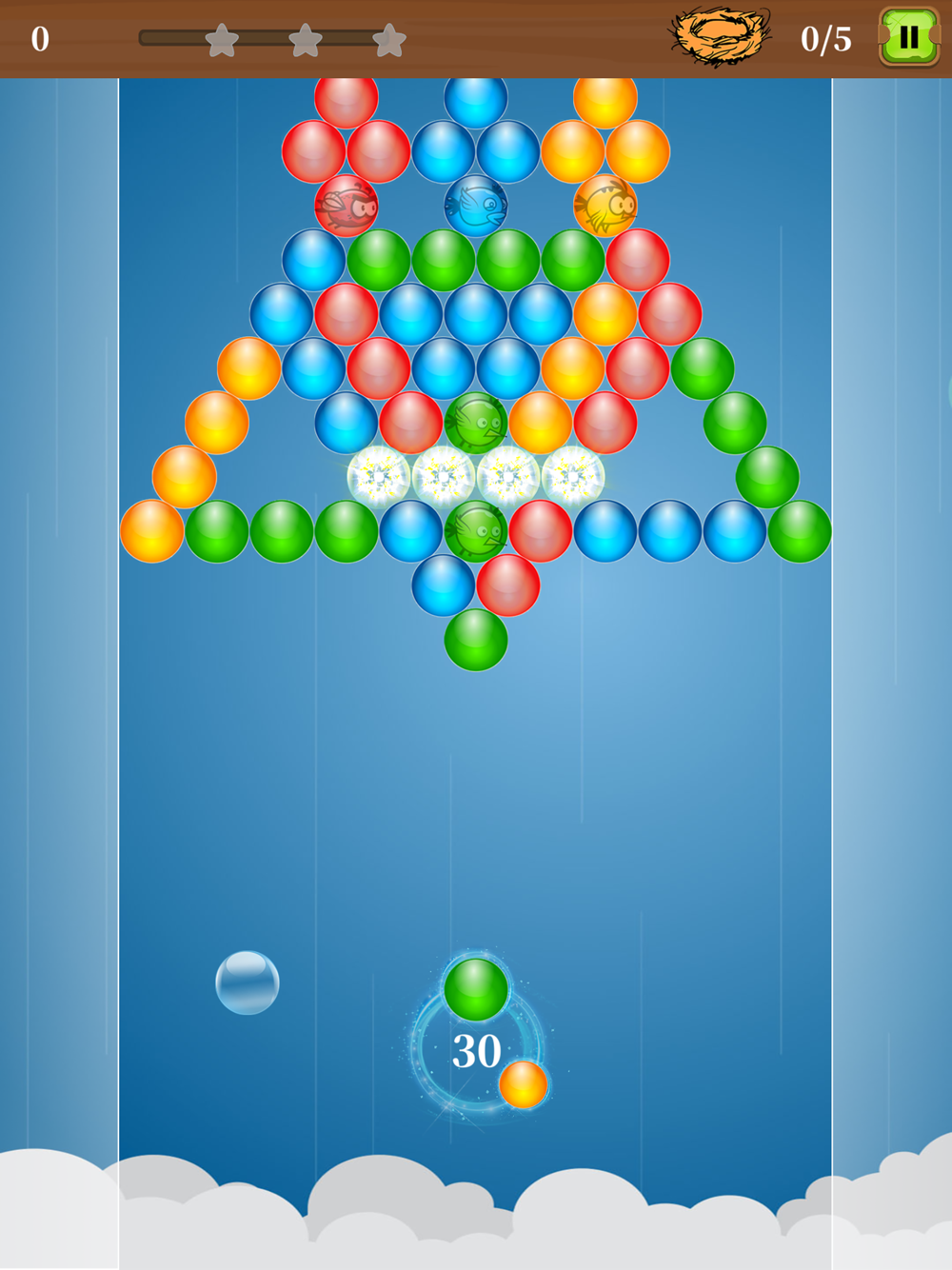 The goal of each puzzle is to save trapped birds by bursting bubbles