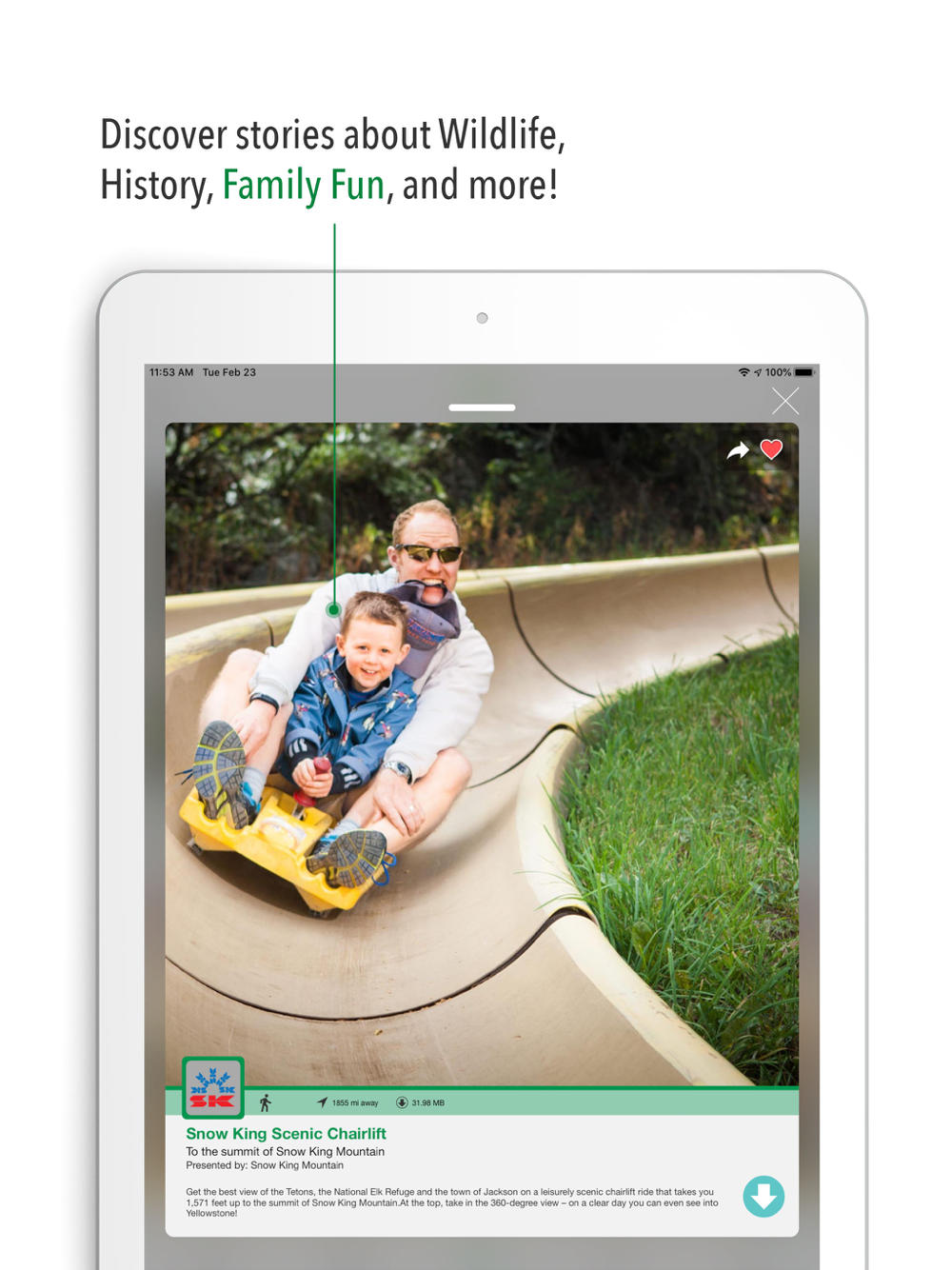With more than 220 walking, biking, driving, and paddling tours (and many more on the way!), this location-aware app works both offline and inside your pocket, allowing you to truly enjoy your surroundings. Simply download a tour to your device before you head out — and enjoy!