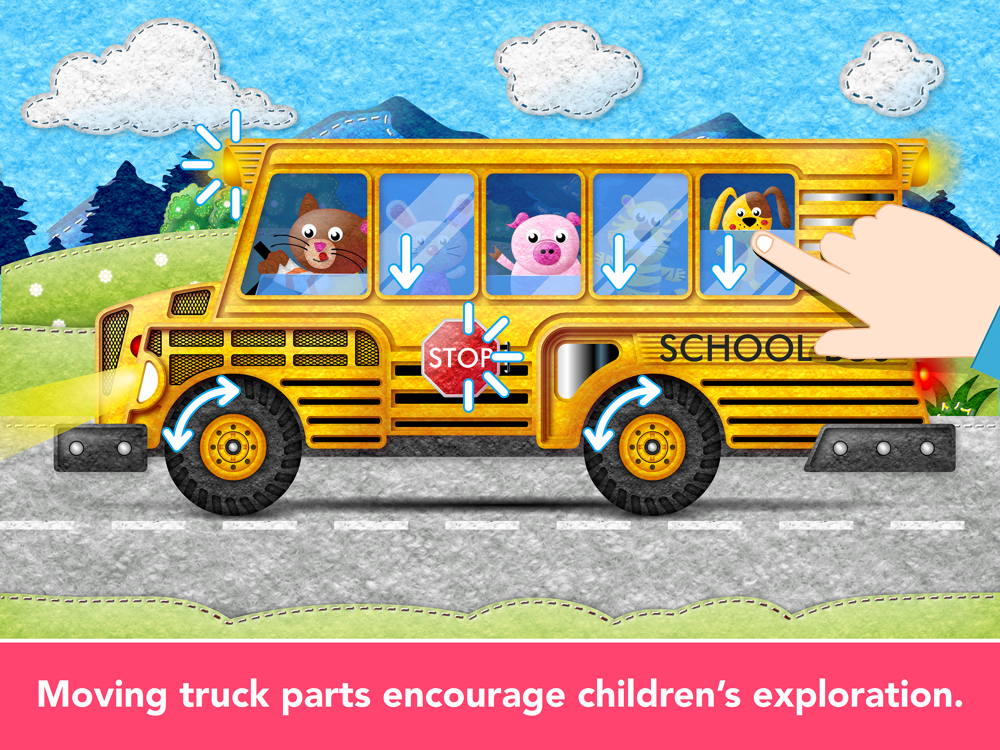 A bright collection of fun puzzles devoted to all curious preschool children who love trucks and vehicles. The app develops children’s logic and fine-motor skills as children situate puzzle pieces by shape within a picture to construct a vehicle. Each vehicle has moving parts which children can explore once they assemble the vehicle. Children have a ton of fun as they engage in constructive play with these 14 fabulous animated trucks and listen to their fascinating sounds!