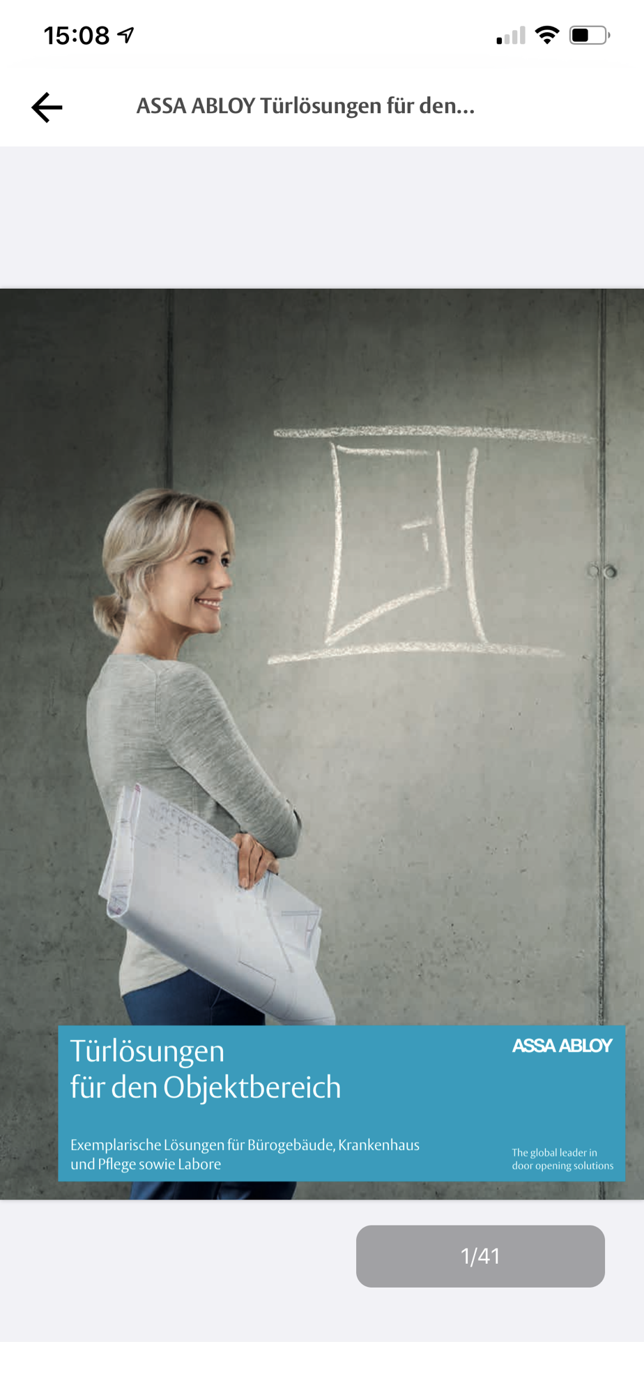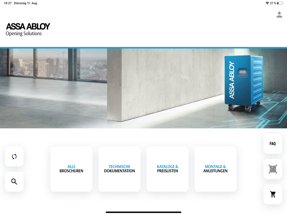 The app from ASSA ABLOY (Schweiz) AG is your access to a variety of documents, such as brochures, catalogues, price lists, videos, instructions and other important documents. All documents are immediately available with a login. Without logging in, you have access to all public documents, such as brochures and instructions. This means that you can access all information at any time wherever you are – whether you're consulting with a customer or visiting a construction site.
