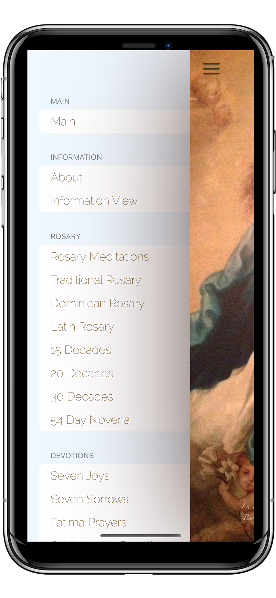 The Rosary and Chaplets views both provide you with a convenient "tap-the-bead" method of praying on each of the views. Rosary and Divine Mercy Chaplet, Opening and Closing prayers are available at a tap, and you can show or hide prayers as needed. Completing a mystery or decade and advancing to the next...a tap and the view is reset and ready for you to continue through all five decades. There are numerous other features included that we hope you will discover and will love!