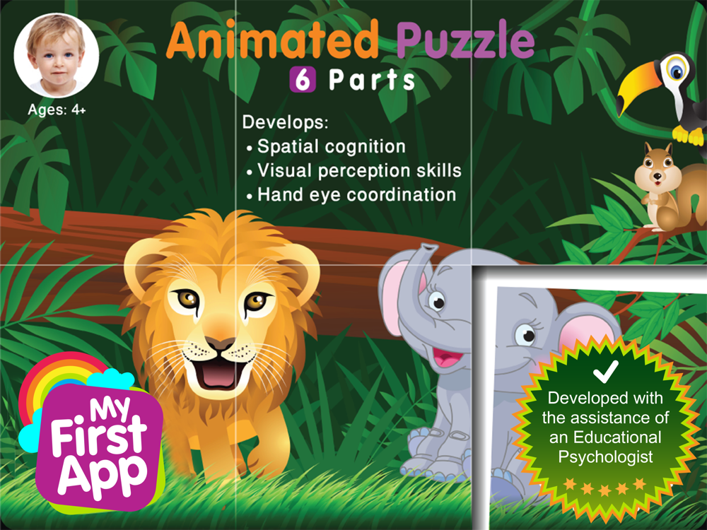 Animated Puzzle 1 (4 parts) - Is designed for children aged 3+. Each board features a 2 by 2 square grid.