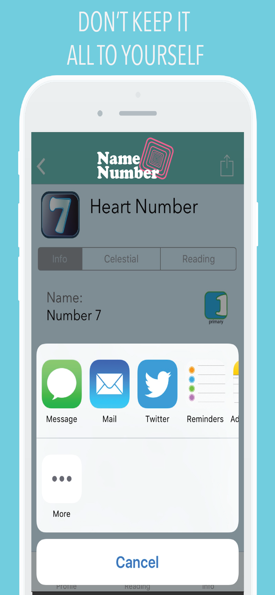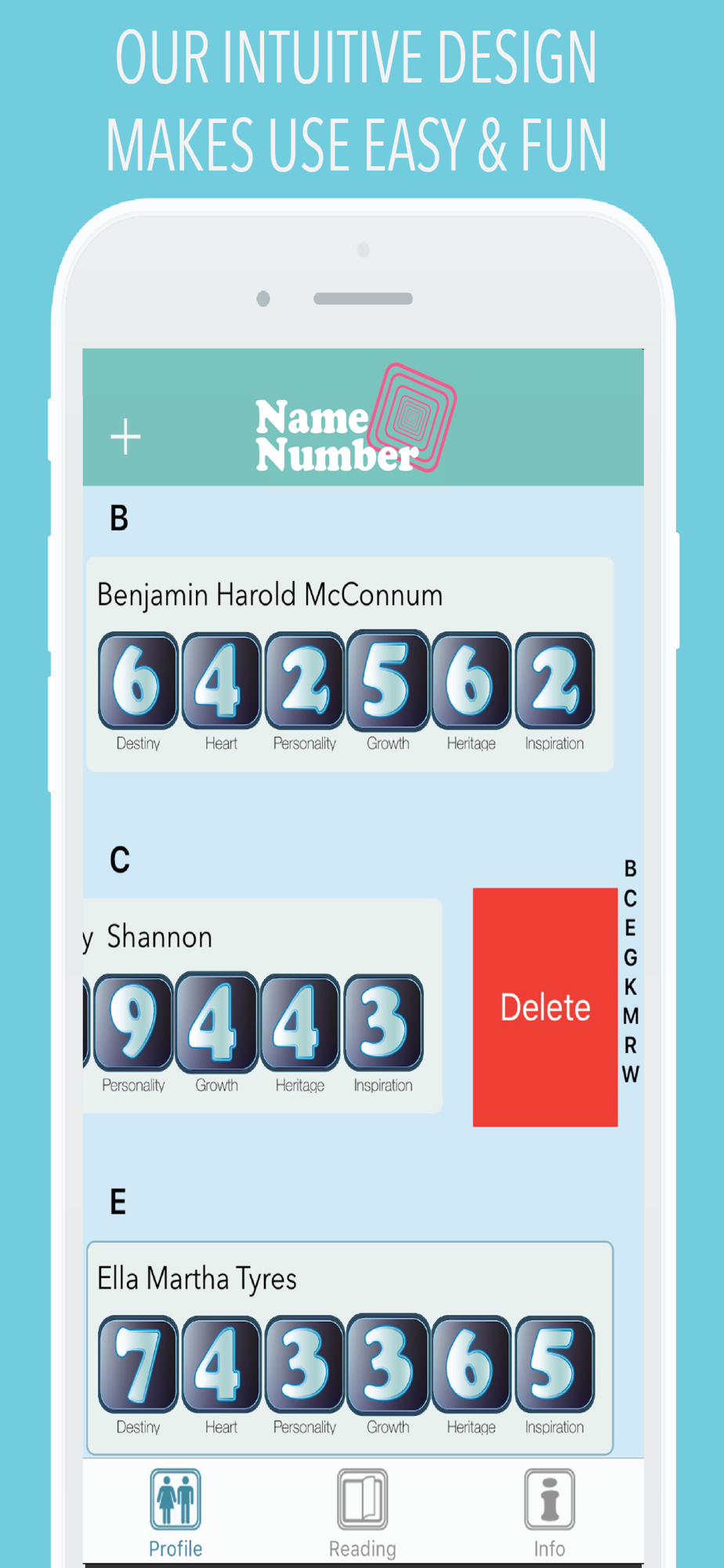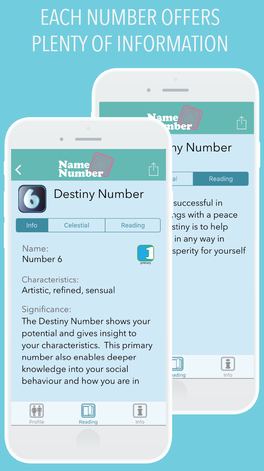 - Get 6 different readings based on your full name - Destiny, Heart, Personality, Growth, Heritage and Inspiration Number