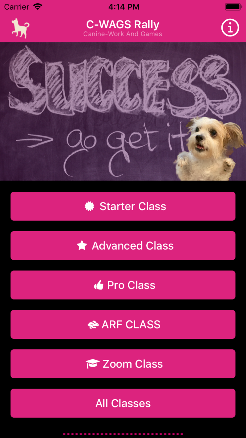 C-WAGS Rally Obedience signs for your iPhone! Signs are provided for all C-WAGS levels: Starter, Advanced, Pro, Arf, and Zoom.