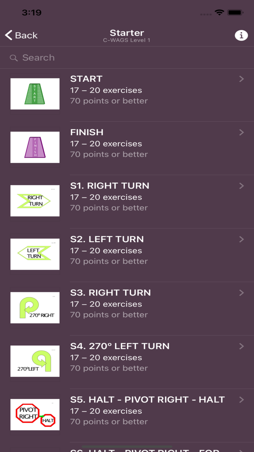 This app is meant to help you when training with your dog for the C-WAGS sport of Rally Obedience. Included are the current C-WAGS rally signs. The app also provides information about performance scoring. A handy search feature allows you to search by sign or sign number at each level.