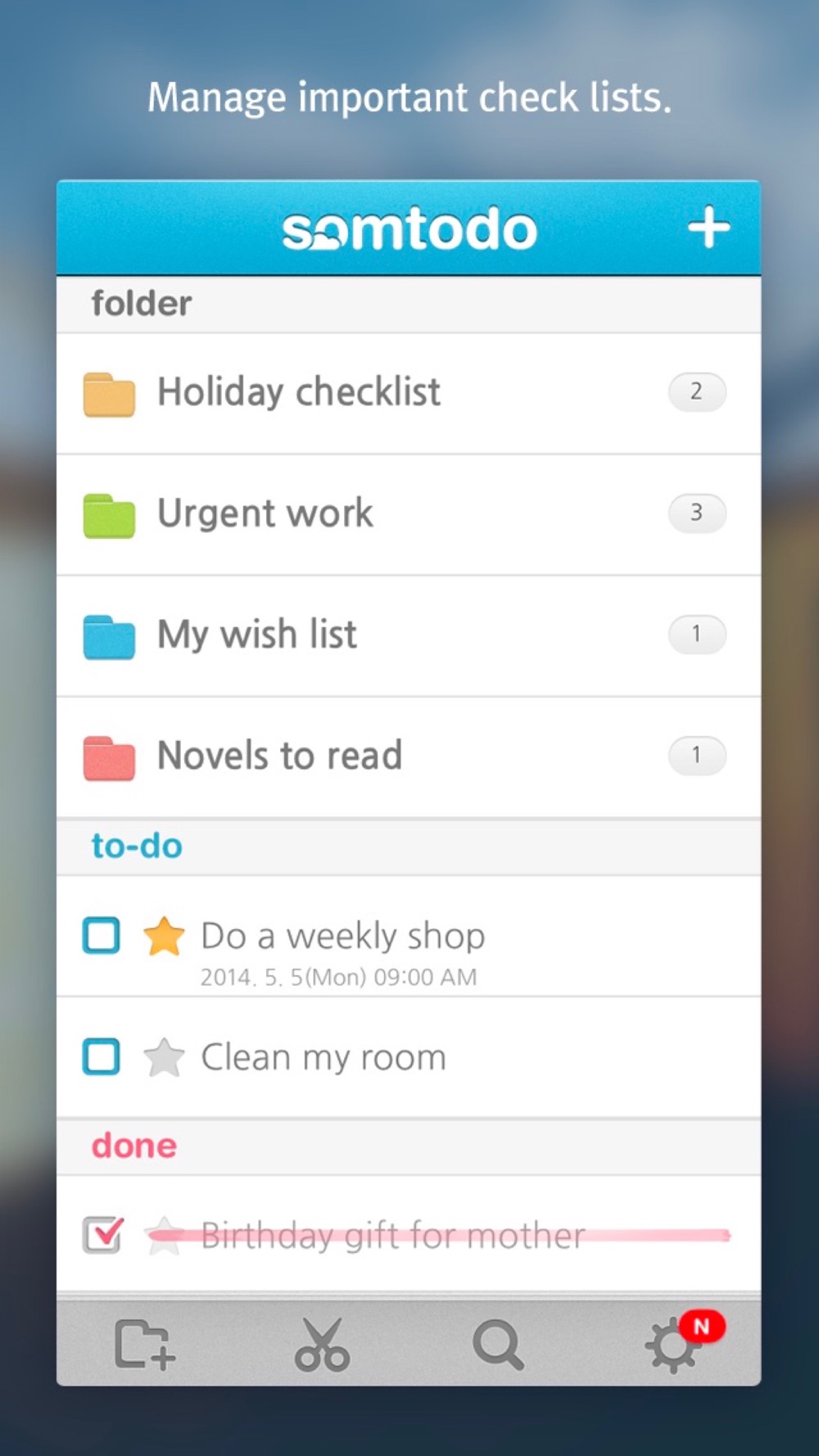 SomTodo is advanced To-do management app which can synchronize to SomCloud.