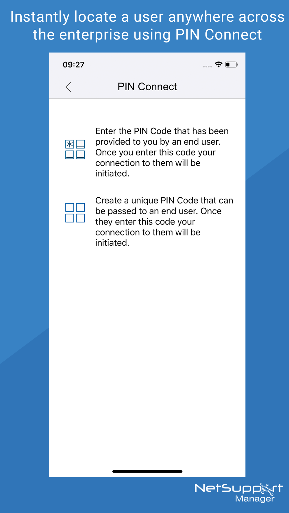 PIN Connect feature allows a technician to instantly locate a user anywhere across the enterprise simply by both parties entering a unique PIN code.