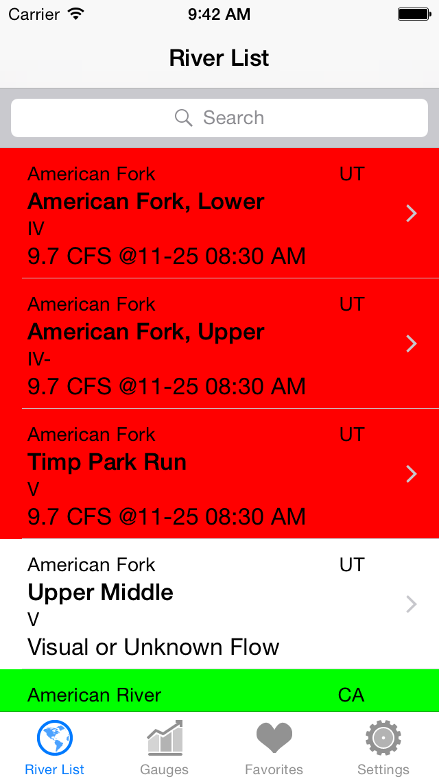 The following water gauges are also available in this app. USGS, CDEC, CANWO and CDWR. This pretty much covers the entire US and most of Canada.