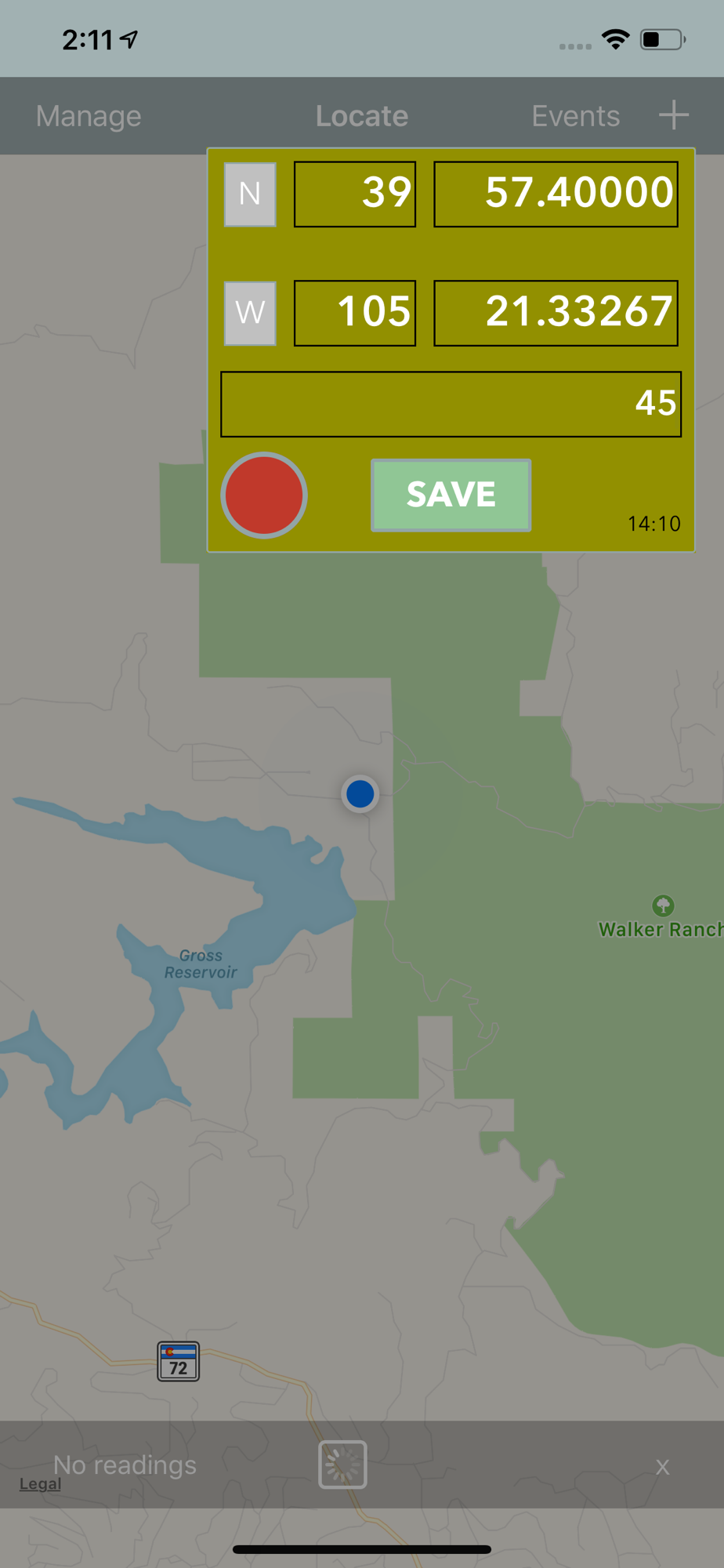Enter readings provided from a remote person (perhaps by iPhone or radio) and add your own readings manually in order to calculate a remote location.