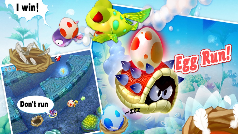 # Game play: Hosts a variety of different game modes such as Coin Rush, Steal the Eggs, Ghost Hunting, Pac Fish, Bomb War, Stay Alive and Fish Defense