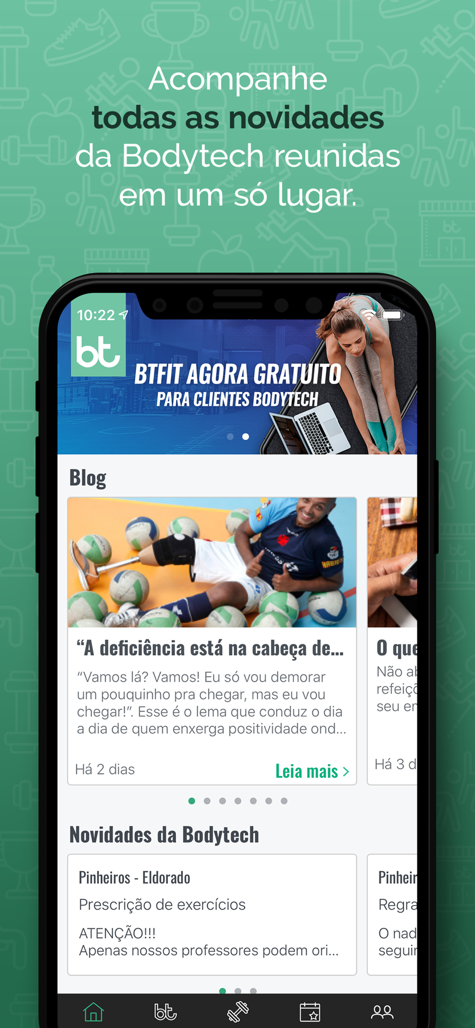 O aplicativo da Bodytech é a experiência completa para nossos clientes. Nele você pode: