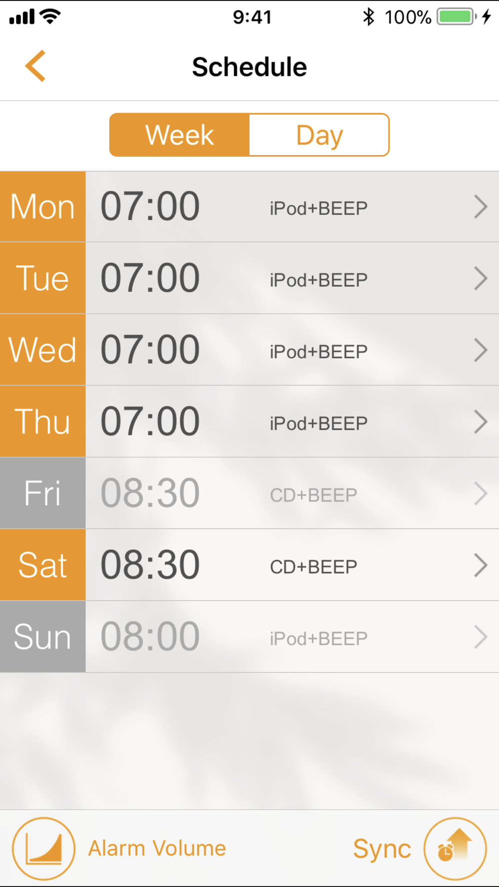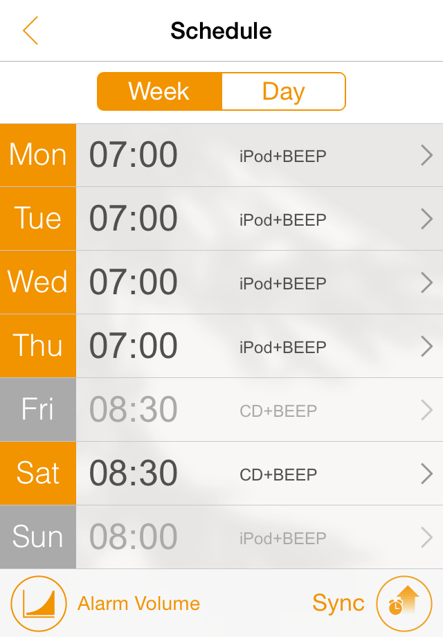 ・Set ON/OFF timer for select times on select days. (Light and Music)